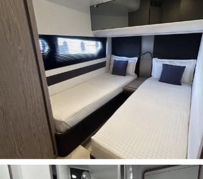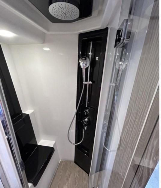 Alarme gaz, Alarme moteur, Auto Dynamic Trim Interceptor, Passavant en teck, Couleur spéciale, Flaps électriques, Éclairage de courtoisie, Spots sous-marins, Passerelle, Plateforme arrière, Pont en teck, Cockpit en teck, Prise de quai.