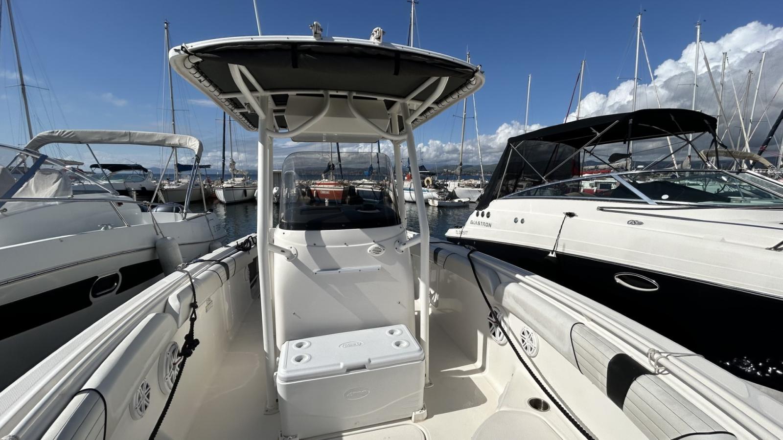 Exceptionnel WELCRAFT 252 FISHERMAN de 2014, motorisé en 2 x 200 CV YAMAHA F GETX (330h), avec pilote automatique, Traceur, Vhf, TTOP, coque noire, suivi par Mécanicien.