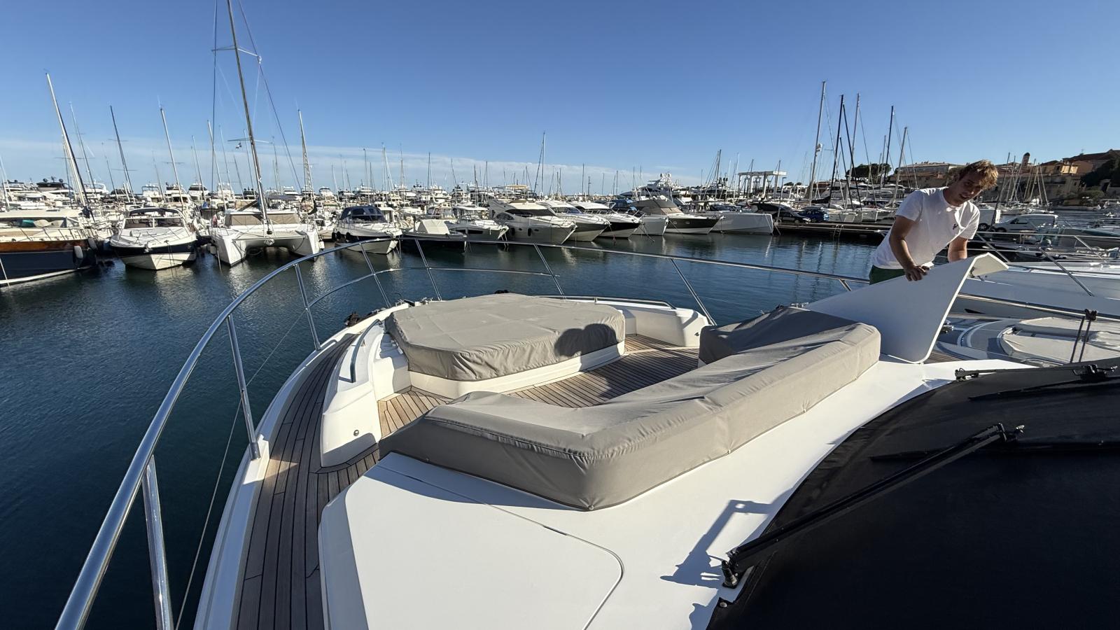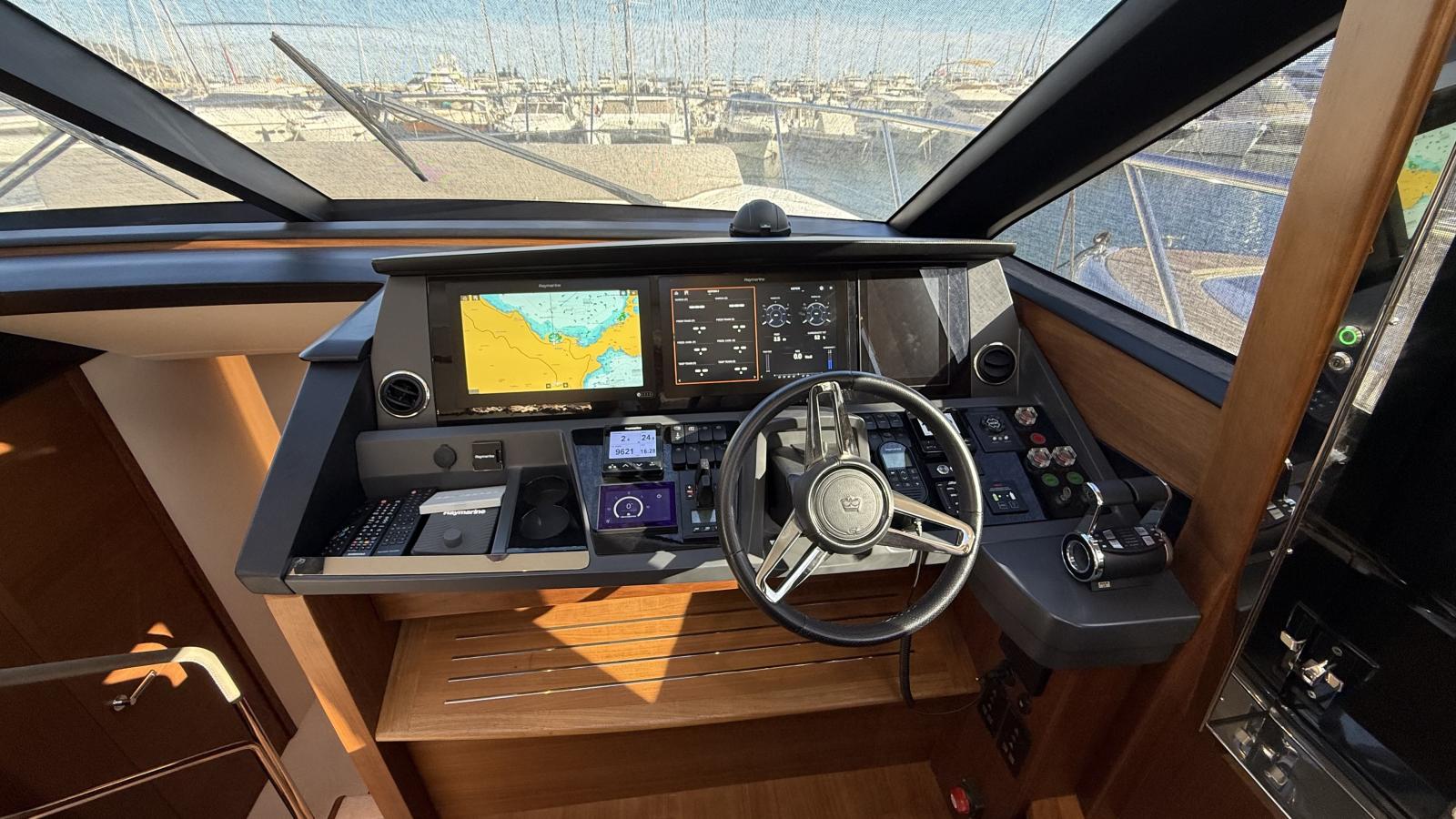 Ce Princess S65 est un superbe exemple de l’un des modèles sportbridge les plus prisés du chantier, alliant performance, confort et design britannique intemporel. Propulsé par deux MAN V12 de 1 400 ch, il atteint une vitesse de pointe grisante de 38 nœuds et croise en toute fluidité à 28 nœuds.
