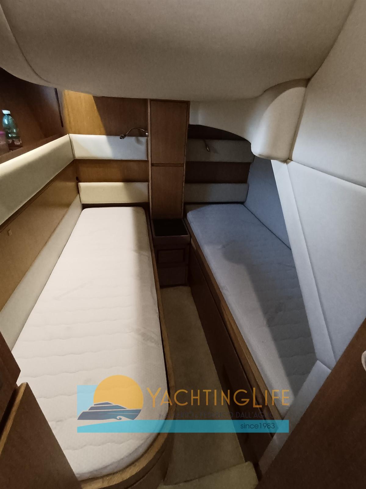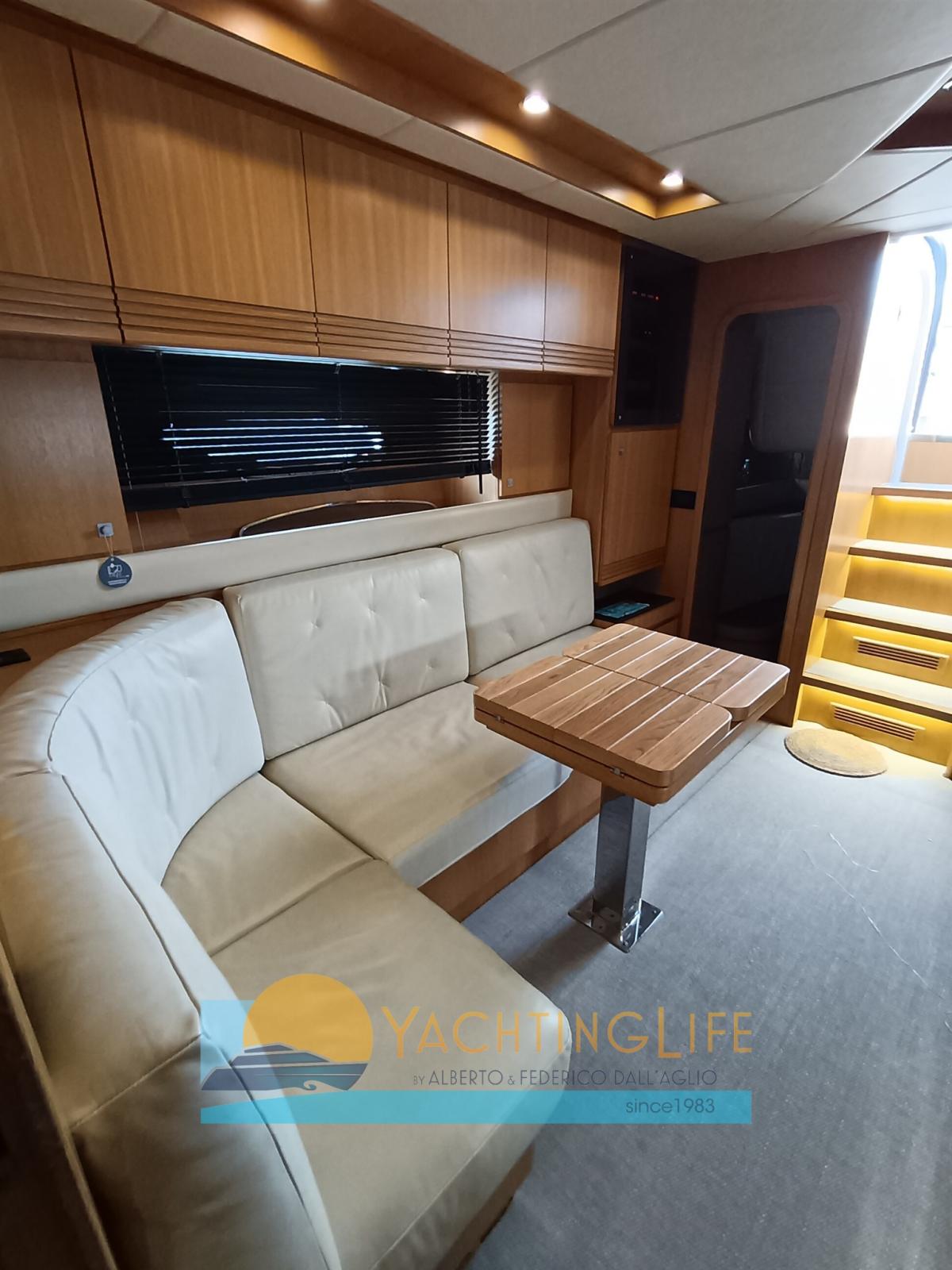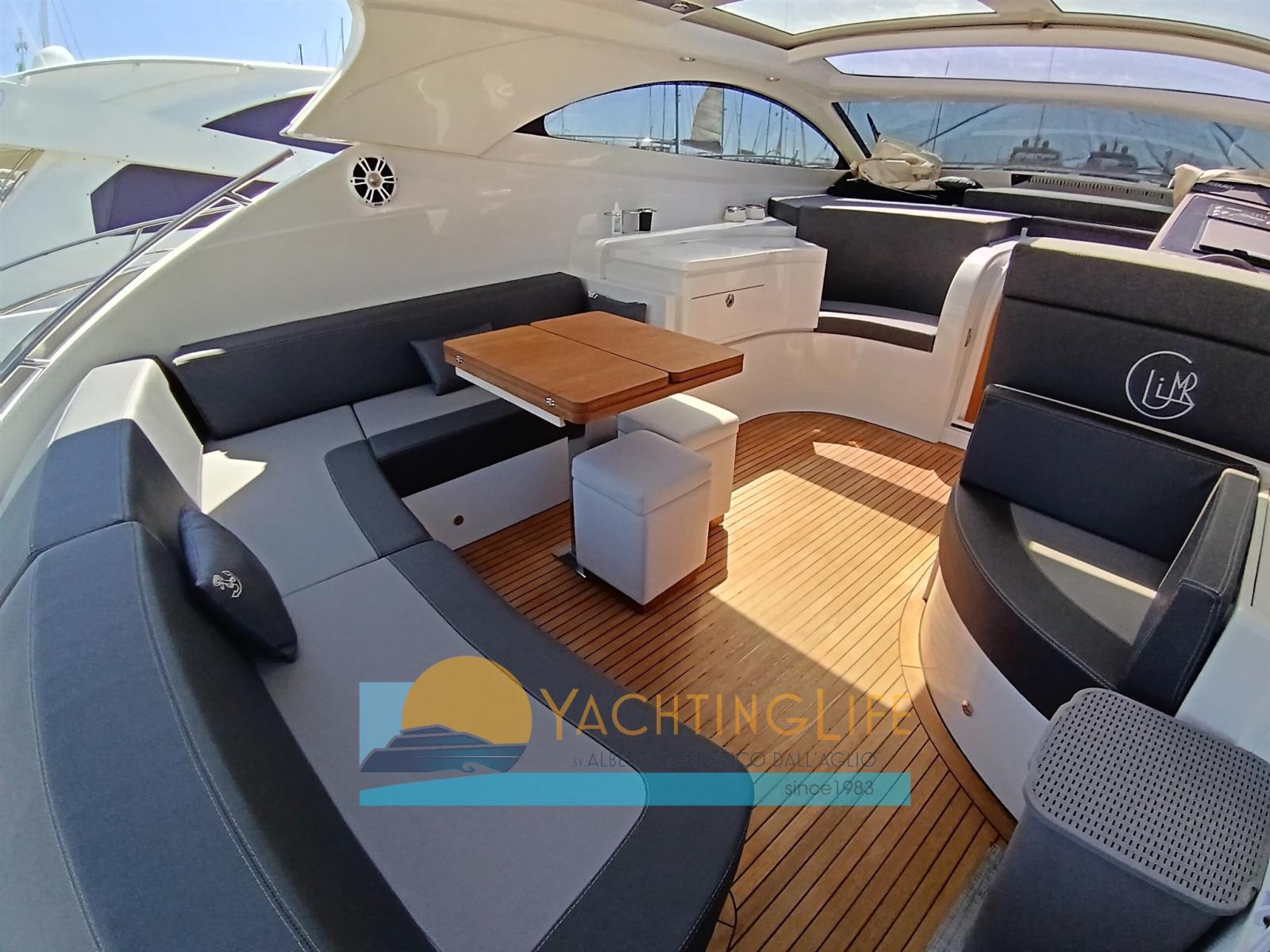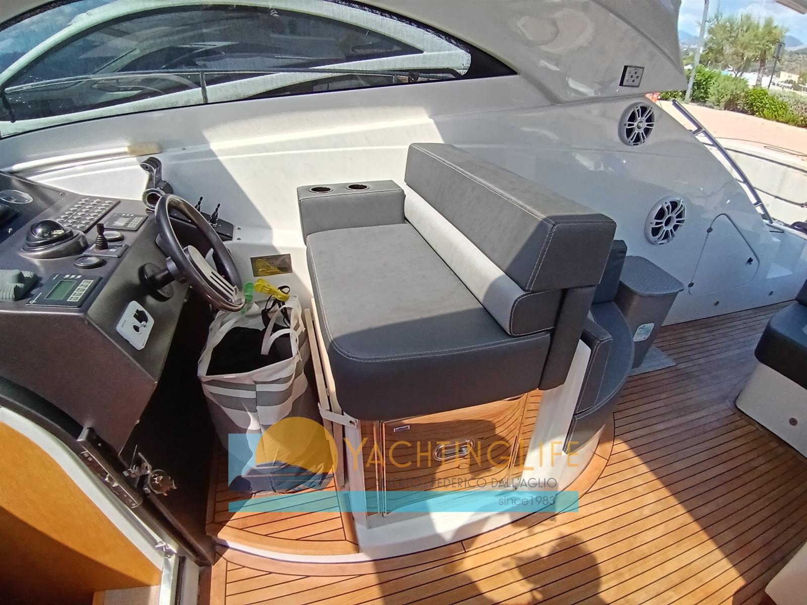 Alarme moteur, Alarme de pompe de cale, Ouverture du compartiment moteur électrique, Eau sous pression, Passavant en teck, Douche de cockpit, Flaps hydrauliques, Hard top, Extincteur(s) fixe(s), Indicateurs de flaps, Lavabo dans le cockpit, Éclairage de courtoisie, Passerelle (idraulica), Plateforme arrière, Pompe de cale automatique, Porte latérale, Cockpit en teck, Prise de quai, Guindeau électrique, Echelle de bain, table de cockpit, Corne, Winch électrique arrière.