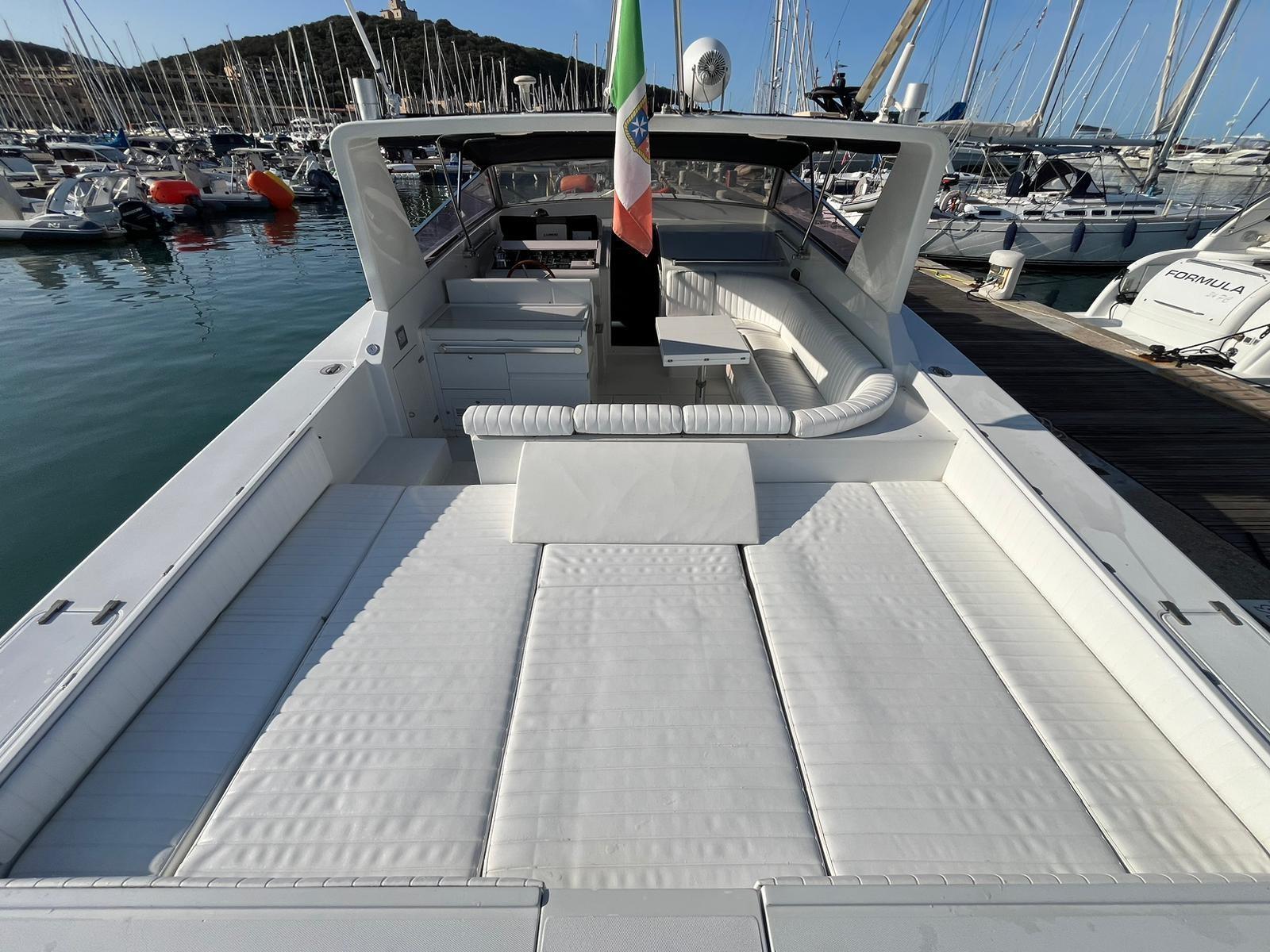Eau sous pression, Douche de cockpit, Flaps hydrauliques, Moteur hors-bord pour annexe, Passerelle (idraulica a scomparsa), Plateforme arrière, Onduleur, Guindeau électrique, Echelle de bain, Annexe.