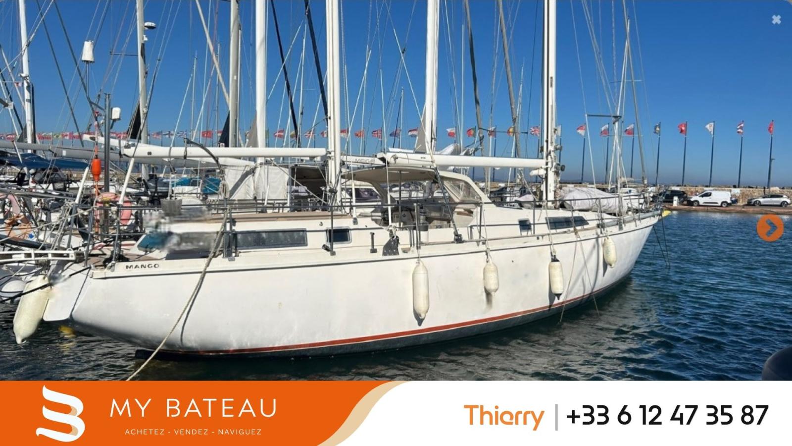 AMEL MANGO 52 – Voilier ketch hauturier réputé pour sa solidité et son confort. motorisé par un Perkins 75 CV. Cockpit central, 2 cabines doubles, grand carré, cuisine en U et deux salles d’eau pour accueillir jusqu’à 8 personnes. Gréement ketch avec génois et grand-voile sur enrouleur, trinquette et spi. Groupe électrogène Kohler, propulseur d’étrave, annexe récente, guindeau électrique et antifouling 2025. Électronique complète : GPS Raymarine, radar Furuno, sondeur B&G, pilote automatique. Idéal pour la grande croisière ou un tour du monde, prêt à naviguer en toute autonomie. REPRISE ET PLACE DE PORT POSSIBLE ! Contact Thierry 06.12.47.35.87.