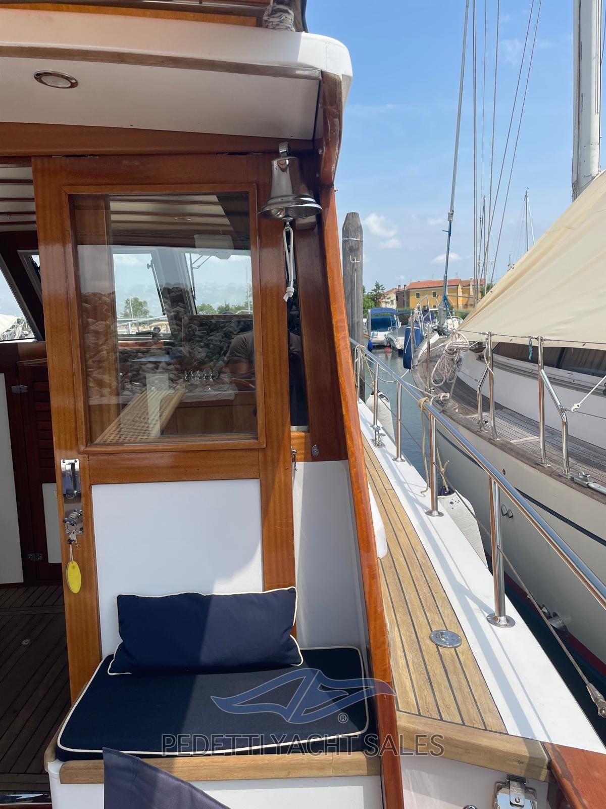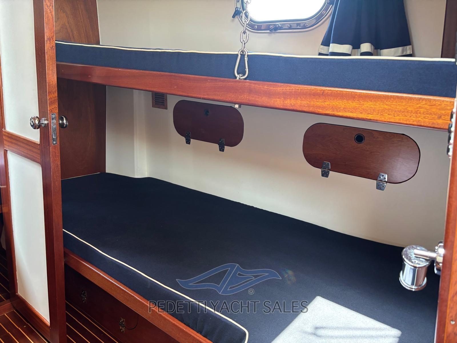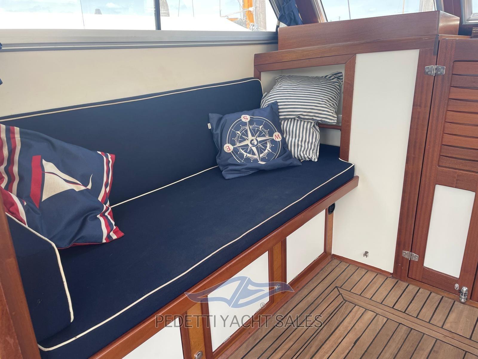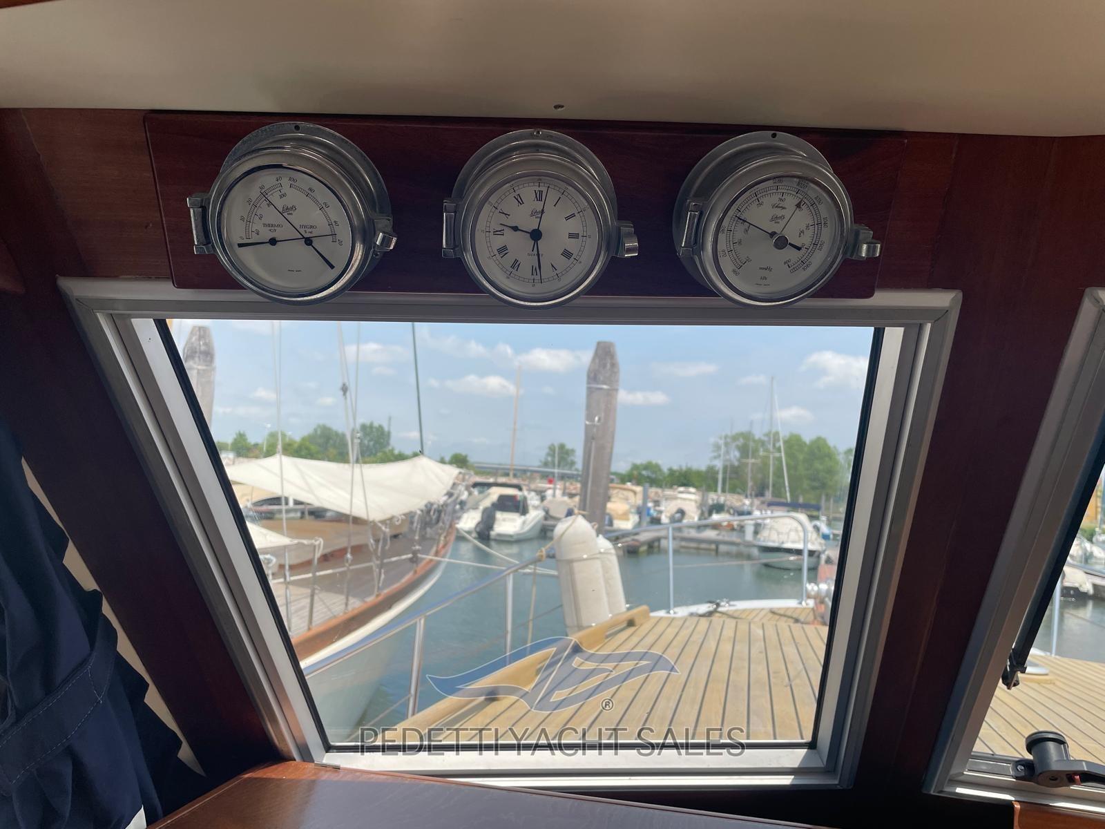 Alarme moteur, Alarme de pompe de cale, Eau sous pression, Douche de cockpit, Phare de poursuite, Flaps électriques, Éclairage de courtoisie, Spots sous-marins, Passerelle, Pompe de cale automatique, Prise de quai, Guindeau électrique, Echelle de bain, table de cockpit, Filières avec sortie latèrale, Corne, Pont en teck.