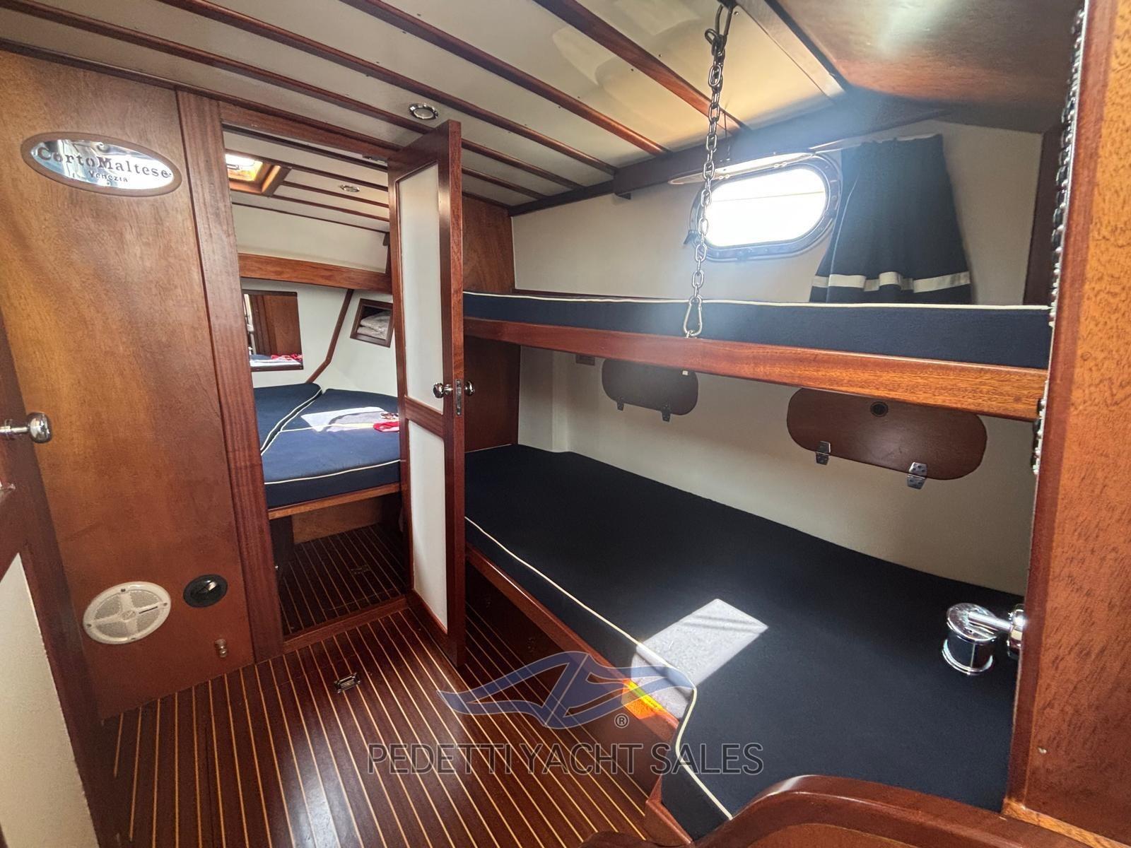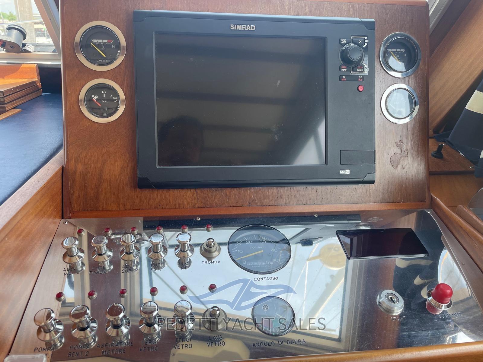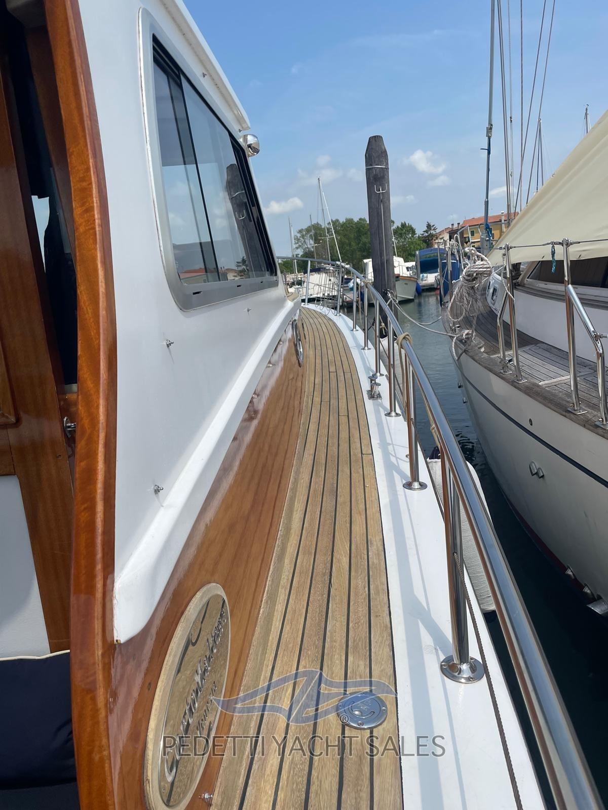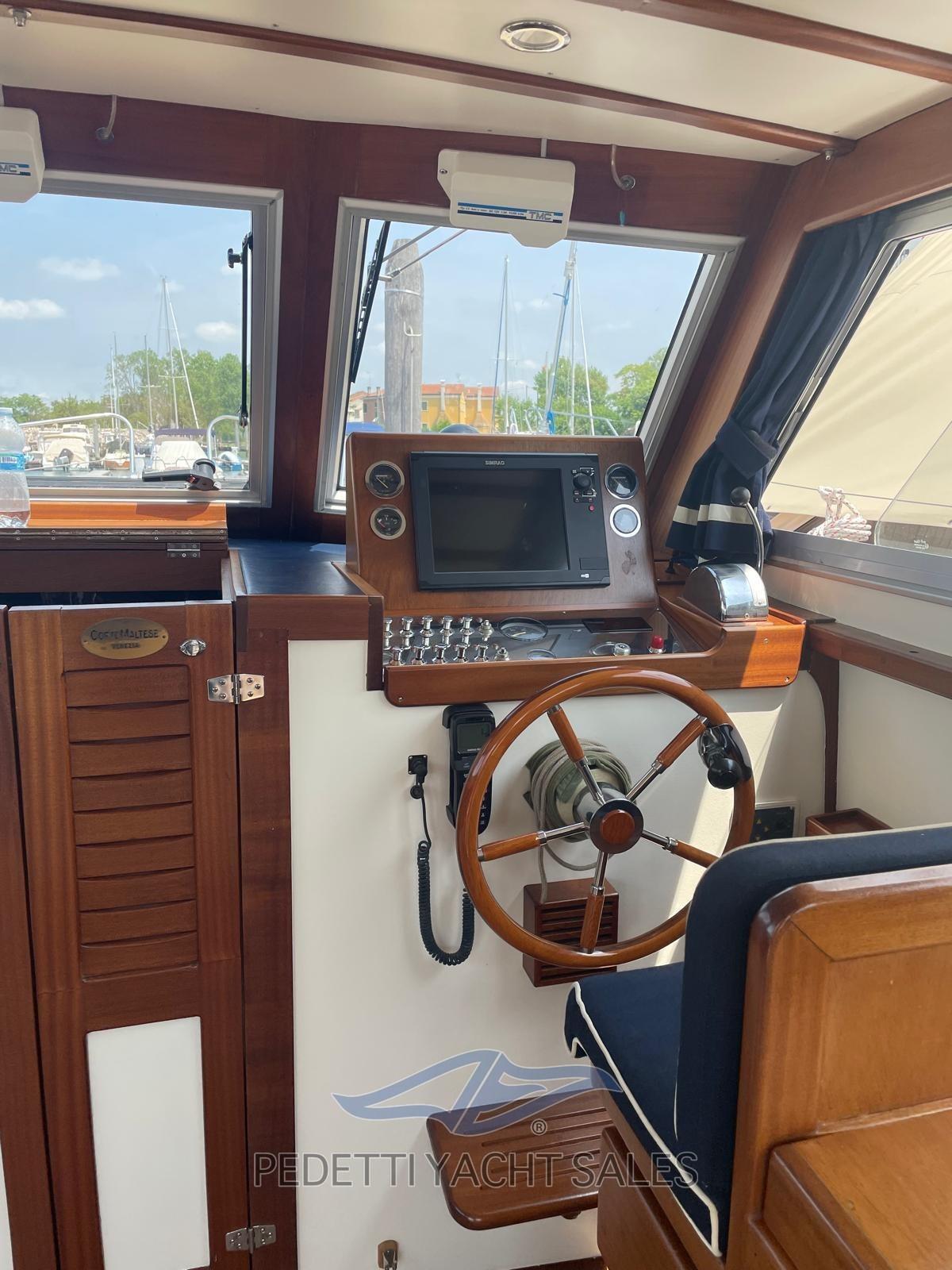 Alarme moteur, Alarme de pompe de cale, Eau sous pression, Douche de cockpit, Phare de poursuite, Flaps électriques, Éclairage de courtoisie, Spots sous-marins, Passerelle, Pompe de cale automatique, Prise de quai, Guindeau électrique, Echelle de bain, table de cockpit, Filières avec sortie latèrale, Corne, Pont en teck.