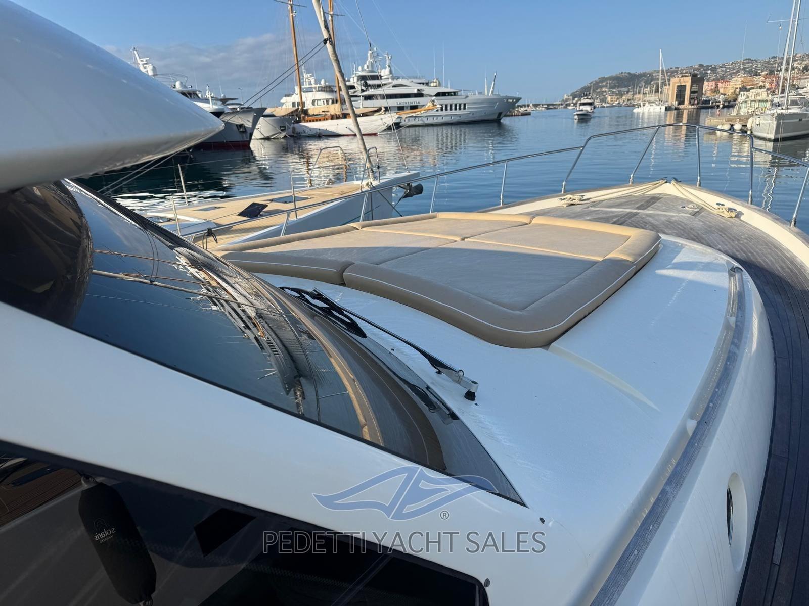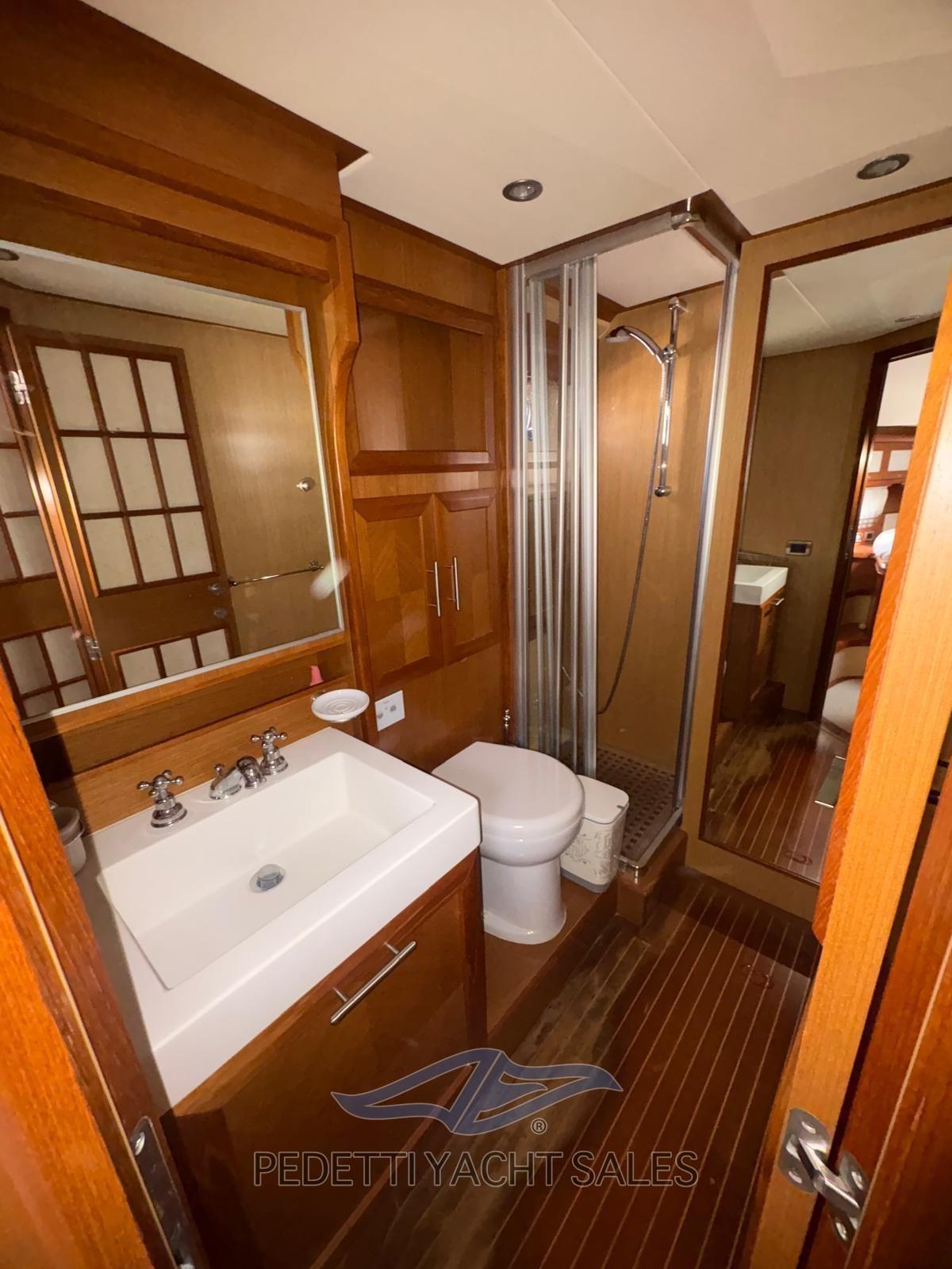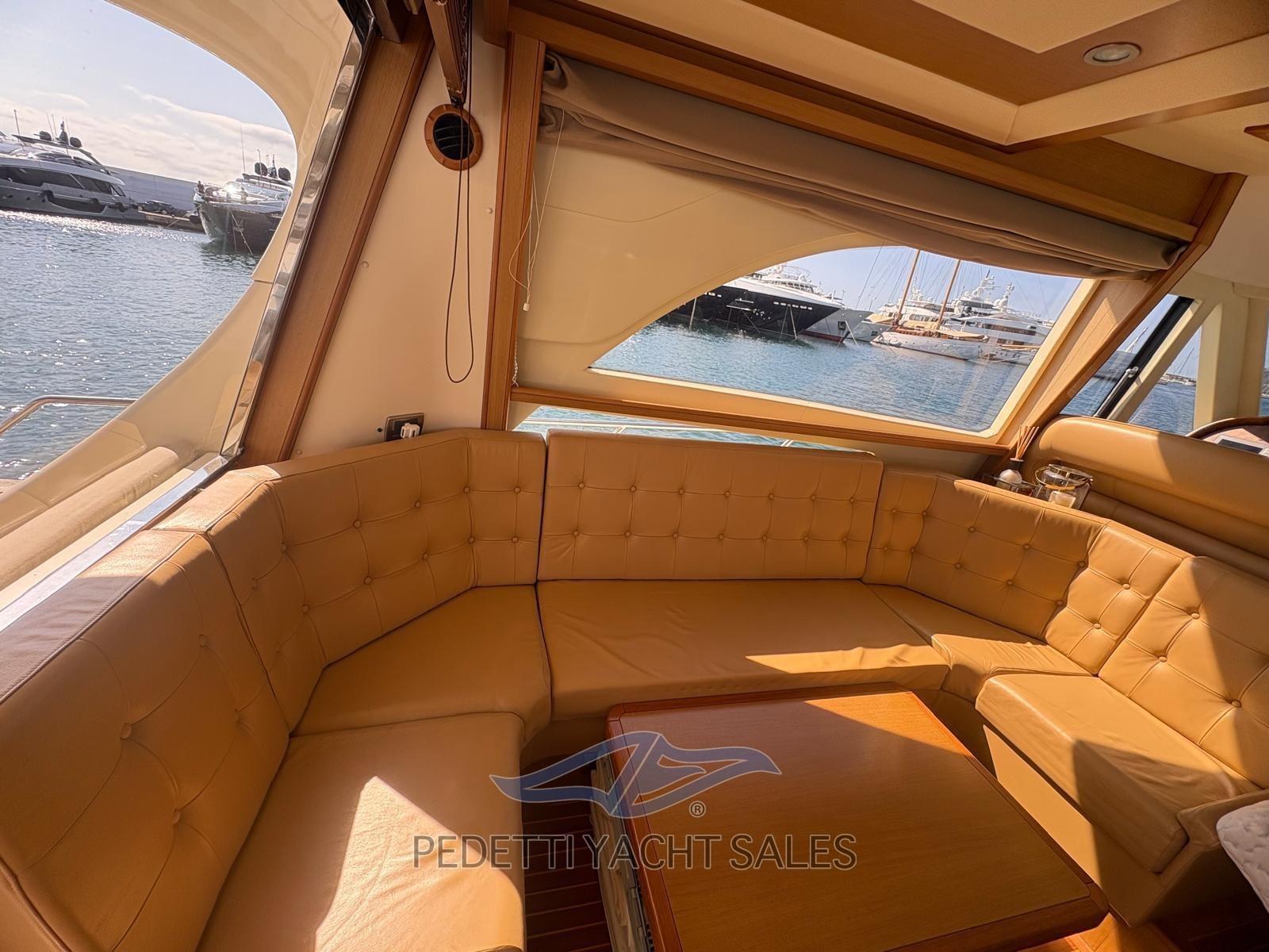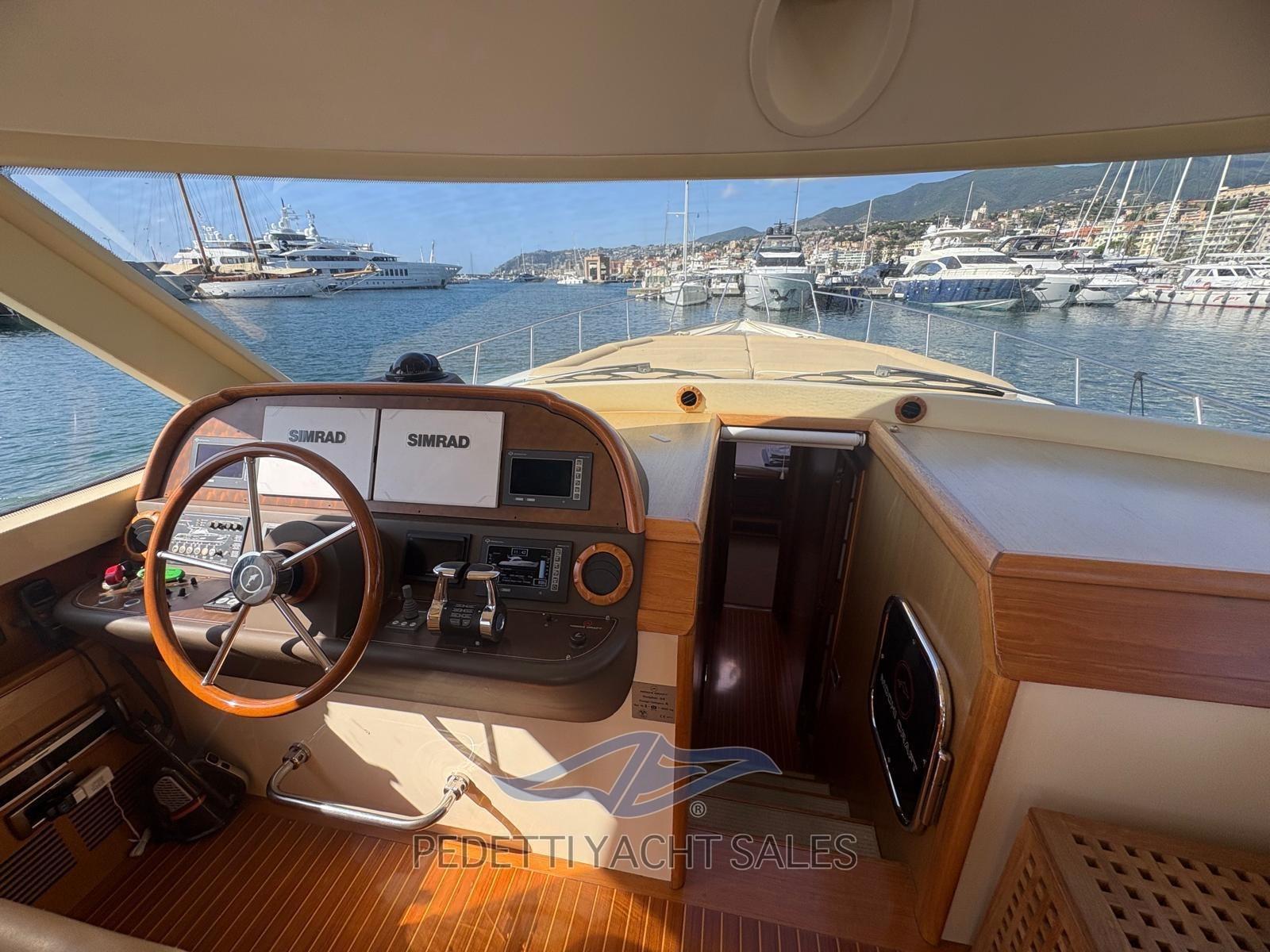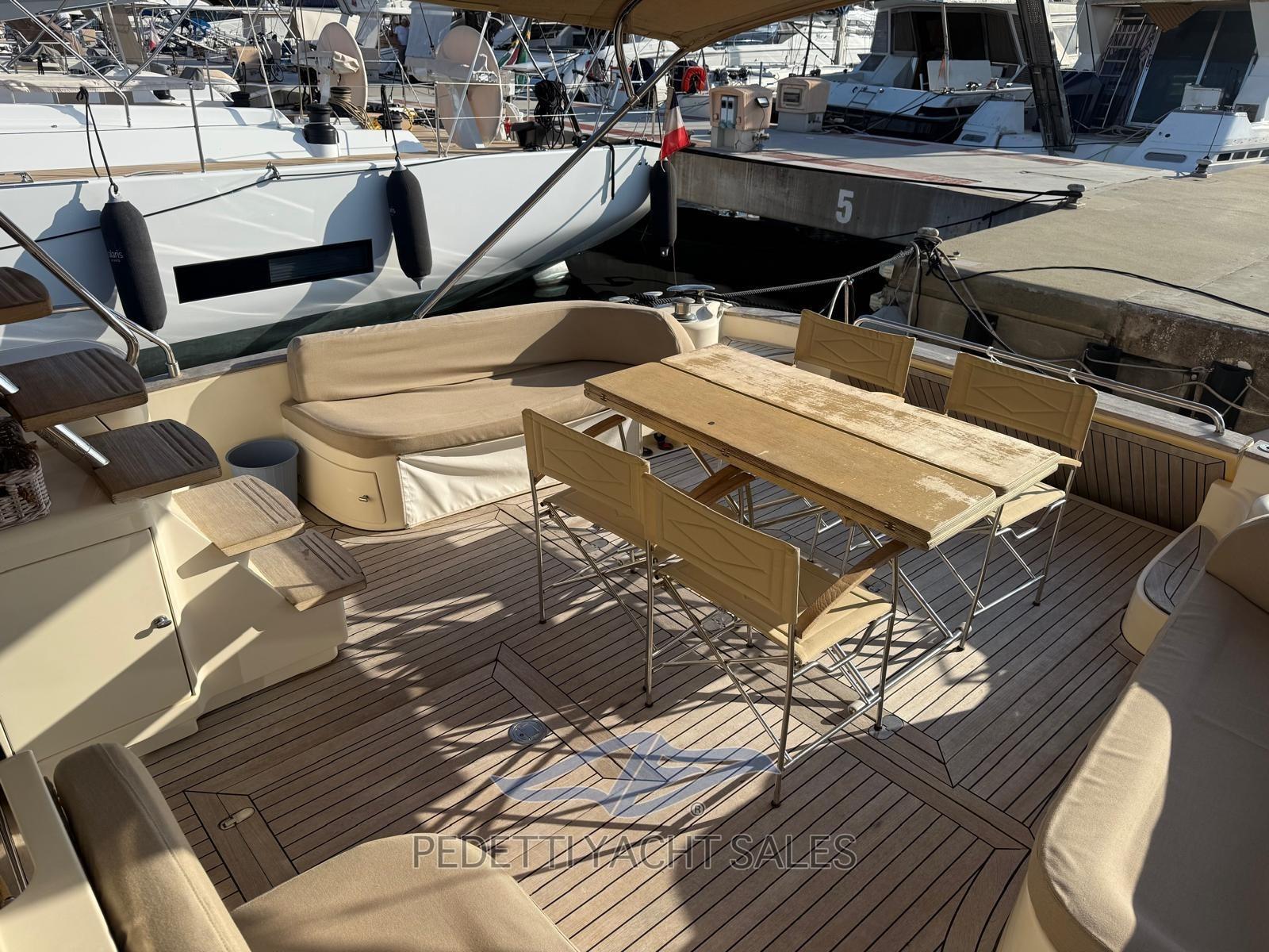 Alarme gaz, Alarme moteur, Alarme de pompe de cale, Ancre (Bruce 20 kg + catena mt 75 diametro 10mm), Eau sous pression, 10 Batteries, Passavant en teck, Câble d’alimentation à quai, Filères, Douche de cockpit (acqua calda e fredda), Propulseur d'étrave (Vetus), Phare de poursuite, Flaps électriques, Garage à annexe, Extincteur(s) fixe(s) (A polvere in sala macchine), Indicateurs de flaps, Lavage de chaine, Lavabo dans le cockpit, Éclairage de courtoisie, Passerelle (telescopica a scomparsa), Plateforme arrière (in teak con scala bagno a scomparsa), 4 Pompe de cale automatique, Pont en teck, Cockpit en teck, Prise de quai, Guindeau électrique (1500 W), Echelle de bain, table de cockpit, Table pliante de salon, Annexe (con motore elettrico), Corne, Winch électrique arrière.