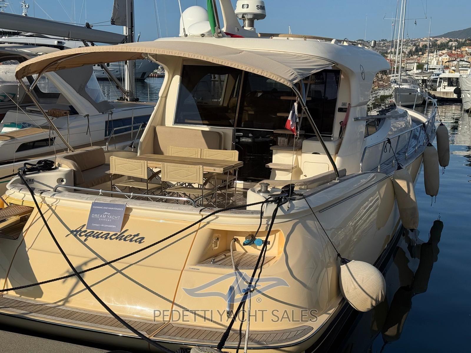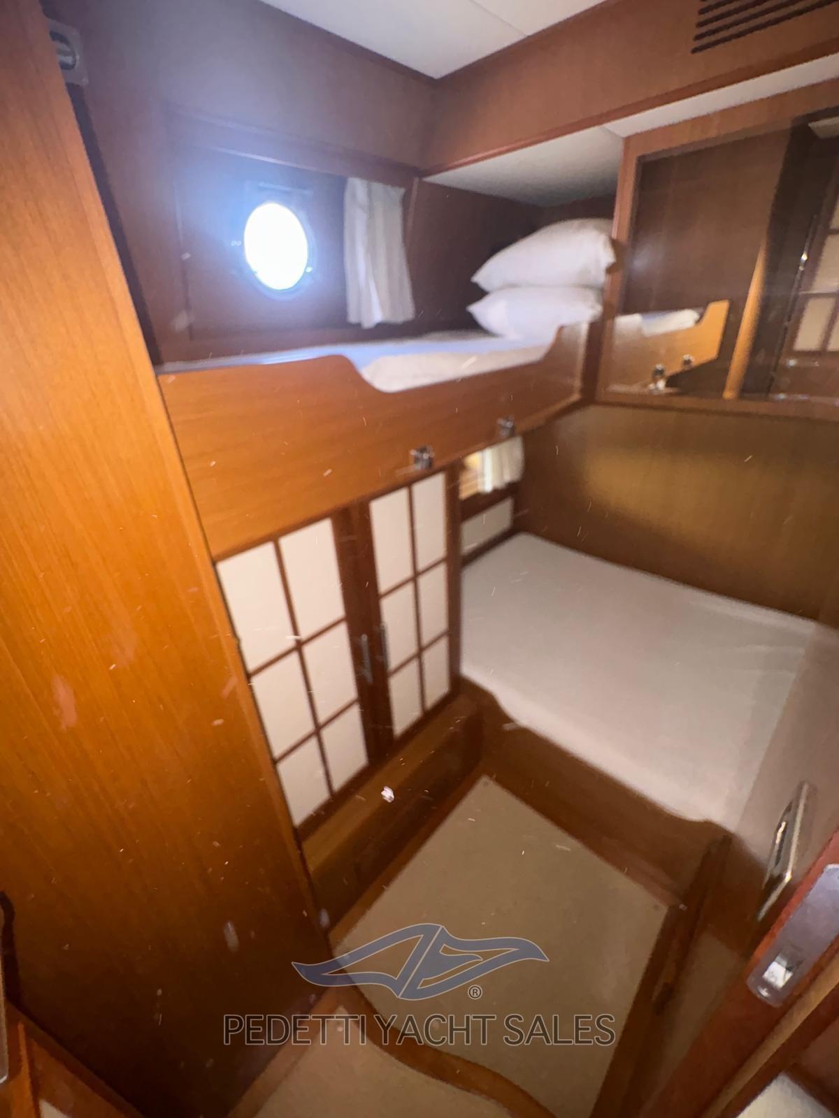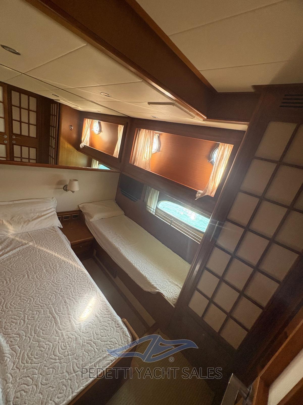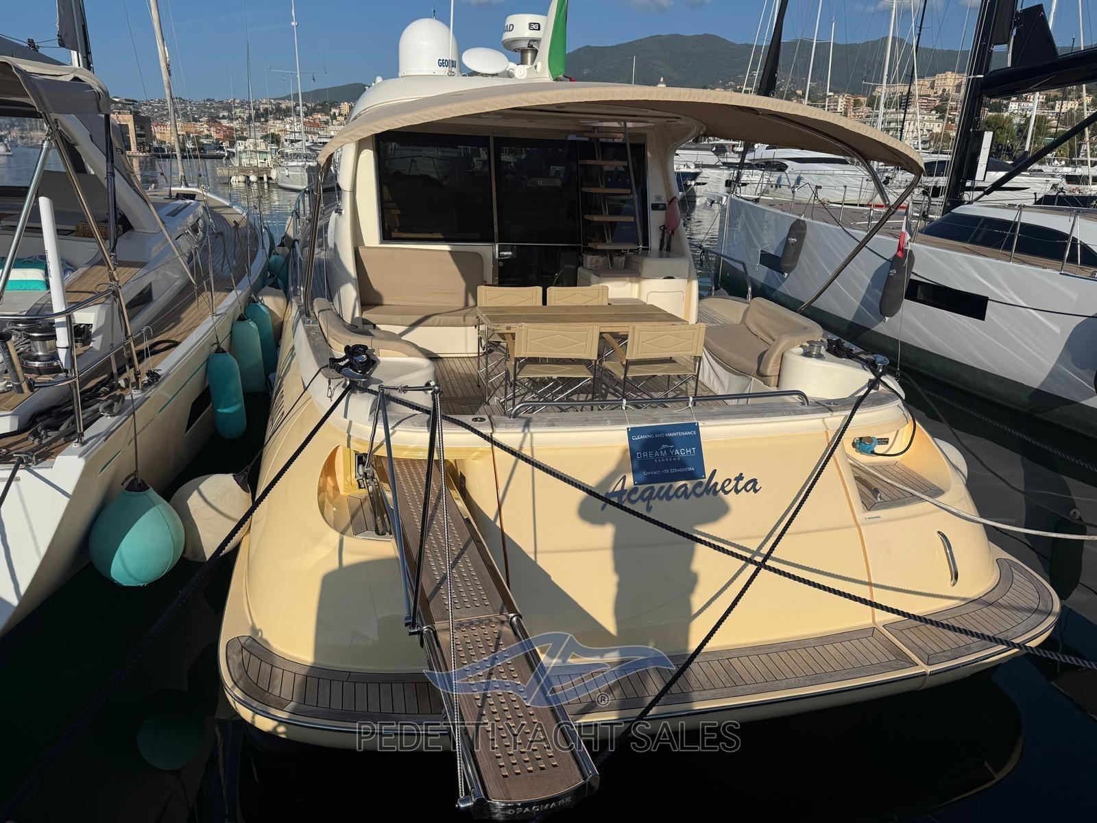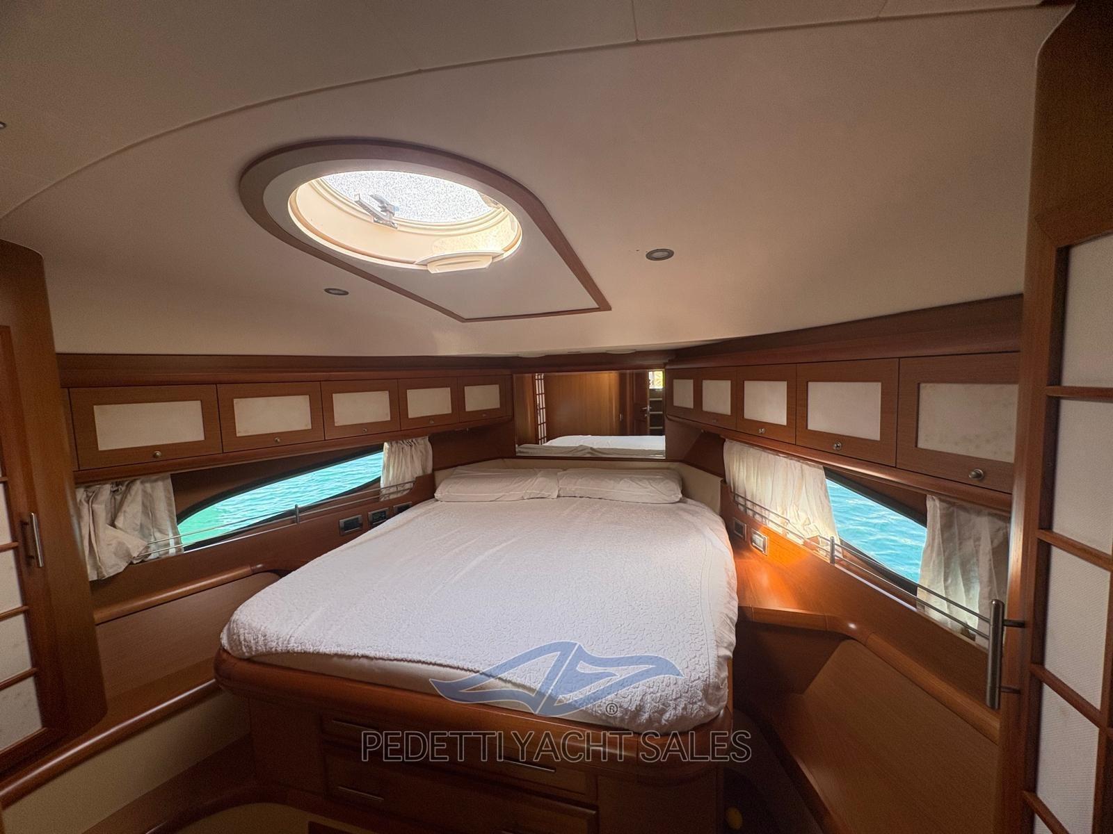 Alarme gaz, Alarme moteur, Alarme de pompe de cale, Ancre (Bruce 20 kg + catena mt 75 diametro 10mm), Eau sous pression, 10 Batteries, Passavant en teck, Câble d’alimentation à quai, Filères, Douche de cockpit (acqua calda e fredda), Propulseur d'étrave (Vetus), Phare de poursuite, Flaps électriques, Garage à annexe, Extincteur(s) fixe(s) (A polvere in sala macchine), Indicateurs de flaps, Lavage de chaine, Lavabo dans le cockpit, Éclairage de courtoisie, Passerelle (telescopica a scomparsa), Plateforme arrière (in teak con scala bagno a scomparsa), 4 Pompe de cale automatique, Pont en teck, Cockpit en teck, Prise de quai, Guindeau électrique (1500 W), Echelle de bain, table de cockpit, Table pliante de salon, Annexe (con motore elettrico), Corne, Winch électrique arrière.
