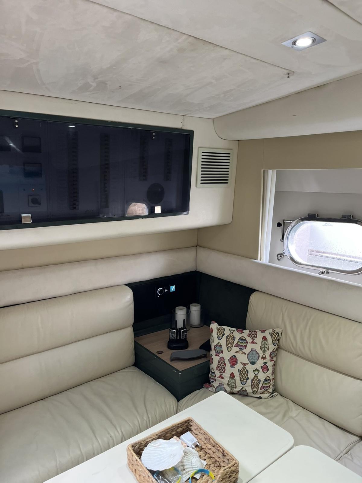 Sarnico 55 Maxim a été lancé en 1995 avec deux moteurs Man 10 cylindres de 820 ch. Avec réaménagement, nouvelle électronique 2024, nouveaux coussins 2024, nouvelles plaques de cuisson de cuisine repeintes. Climatisation révisée. Nouvelles lumières LED, nouveaux celini. Cabine principale double à l’avant avec salle de bain avec WC et bidet et douche. Deux cabines d’invités, l’une avec des lits plats et l’autre avec des lits croisés, avec salle de bain avec bidet et WC et douche. Grand dinetto avec cuisine complète. Ecran tactile Raymarine 12" neuf, VHF, pilote Raymarine nouvel ordinateur mase. Générateur MASE 6,5 kW. Batteries neuves 2024, treuil de poupe électrique.