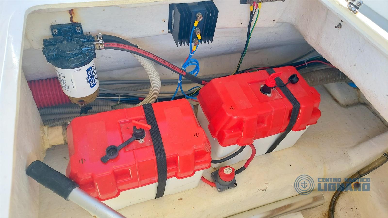Avec : treuil électrique avec ancre et chaîne, compteur de chaîne Quick 2023, batteries 2025, stête synthétique stern 2025, système stéréo avec 2 haut-parleurs, coussins complets 2023, boîte réfrigératrice avec coussin au-dessus, prise 12V, douche avec autoclave, boussole, GPS Garmin 2023 avec transducteur, pompe de cale électrique, échelle de bain, trompette, T-Top en acier inoxydable, visible au Centro Nautico Lignano ! Affaire à ne pas manquer, prix pas très négociable.