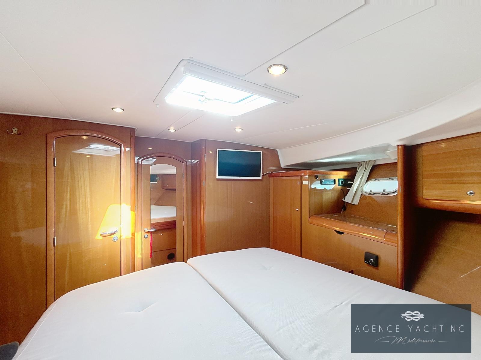 La vie à bord est particulièrement agréable grâce à un aménagement spacieux et chaleureux, pourvu d'équipements de qualité (3 cabines spacieuses, 6 couchages, deux salles de bain...)