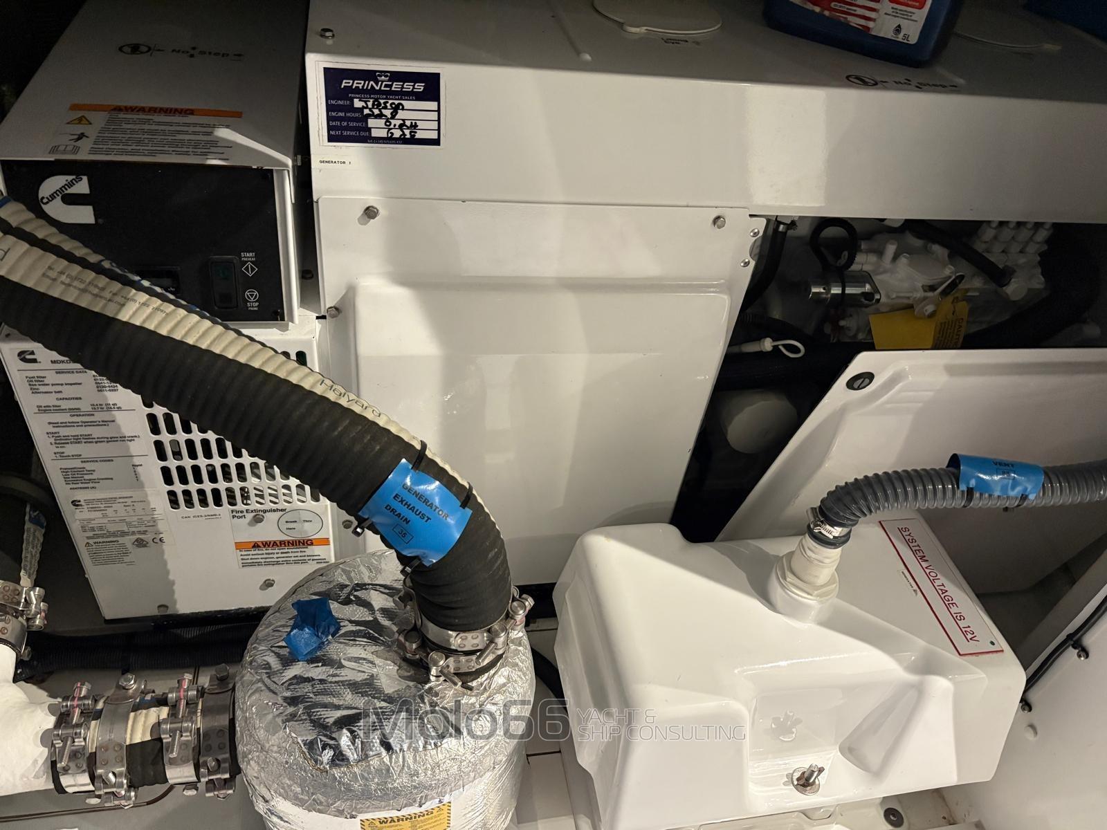 Alarme moteur, Alarme de pompe de cale, Ouverture du compartiment moteur électrique, Eau sous pression, Passavant en teck, Câble d’alimentation à quai, Filères, Douche de cockpit, Double barre à roue, Phare de poursuite, Garage à annexe, Extincteur(s) fixe(s), Lavage de chaine, Lavabo dans le cockpit, Éclairage de courtoisie, Moteur hors-bord pour annexe, Défenses, Passerelle, Plateforme arrière, Pompe à Eau de Mer, Porte latérale, Cockpit en teck, Prise de quai, Connexion eau sous pression à quai, Onduleur, Guindeau électrique, Echelle de bain, Stabilisateurs, table de cockpit, Annexe.
