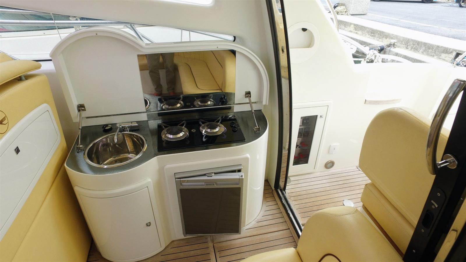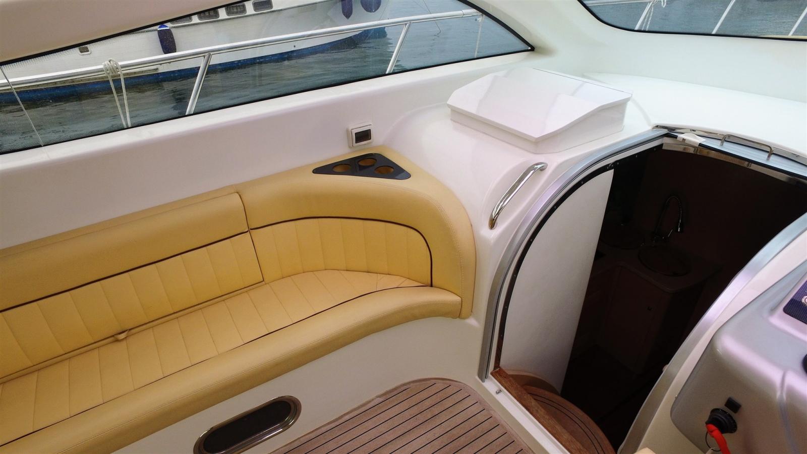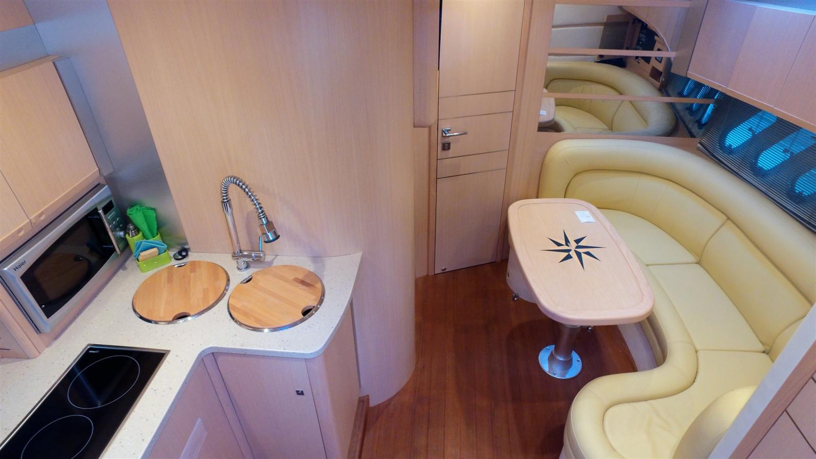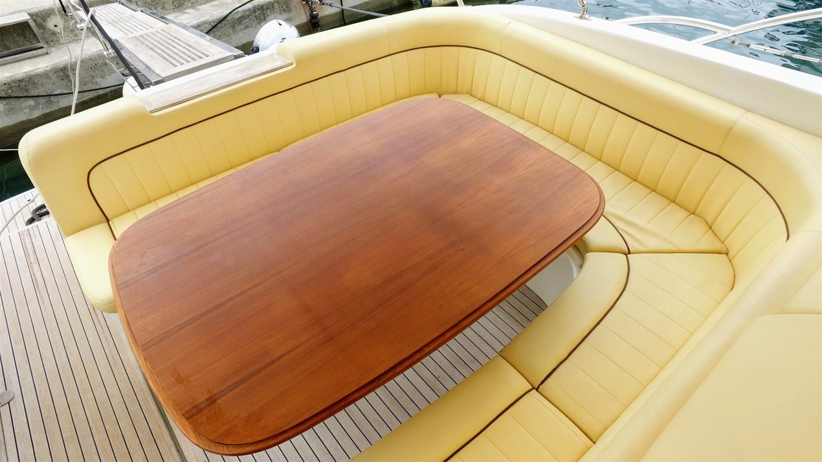 Alarme moteur, Ancre (Inox), Ouverture du compartiment moteur électrique, Eau sous pression, 4 Batteries, Chargeur de batterie (Quick 40 amp), Douche de cockpit, Phare de poursuite, 2 Flaps électriques, Hard top, Lavabo dans le cockpit, Moteur d'annexe (2,3 honda), Passerelle (Hydraulique), Plateforme arrière, Pompe de cale automatique, Pompe de cale manuelle, Cockpit en teck, Prise de quai, Guindeau électrique, Echelle de bain, 2 table de cockpit, Table pliante de salon, Annexe (Arimar 2 m), T-Top (Ouvrant).