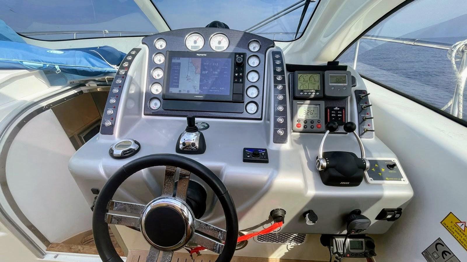 Indicateur d'angle de barre, Commande électrique, Compteur de chaîne (Quick), DSC VHF (Raymarine), Joystick, Pilote automatique (Raymarine ST6002), Plotter GPS (Raymarine axiom Pro12), Radio VHF (Portable), Instruments de mesure pour moteurs.