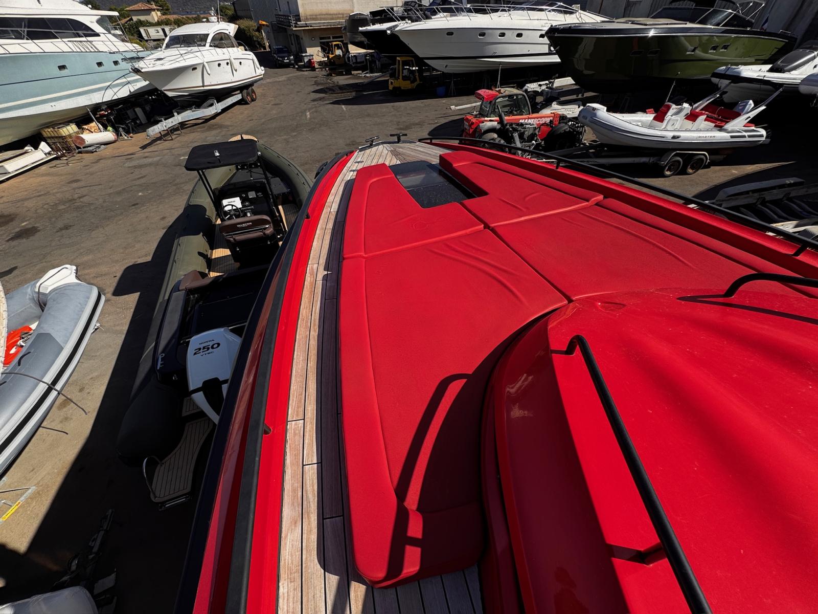 SACS STRIDER 19 de 2015, un semi-rigide qui se distingue par son mélange puissant de performance, confort et fiabilité. Grâce à ses 2 Caterpillar 1150 CV associés aux transmissions Arneson parfaitement révisées, il offre des accélérations marquées et une vitesse de pointe remarquable. Le propulseur d’étrave neuf, les hélices changées, la sellerie refaite, ainsi que la partie électrique de la salle des machines totalement remise à neuf, témoignent d’un entretien technique rigoureux. Il dispose également de bains de soleil généreux, d'un cockpit aménagé, de 2 2 cabines et d'une salle de bain. Son équimenet électronique Raymarine est complet.
