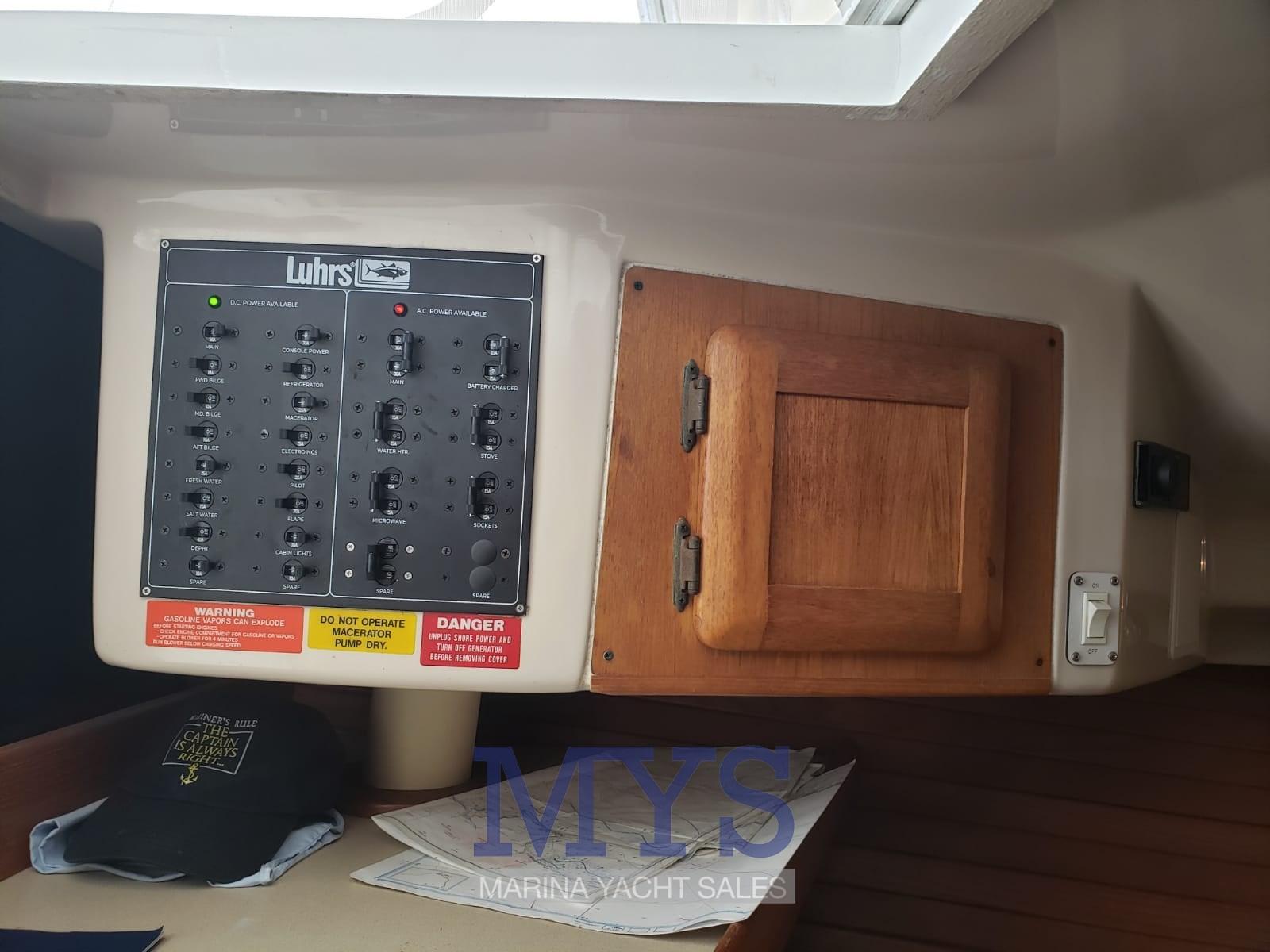 Alarme moteur, Alarme de pompe de cale, Ancre (con catena), Ouverture du compartiment moteur électrique (2023), Eau sous pression (2023), Radeau de sauvetage (2025), 3 Batteries (2 Mot +1 Serv 2025), Chargeur de batterie (2023), Câble d’alimentation à quai, Douche de cockpit, Double barre à roue (2° stazione da riattivare), Phare de poursuite, Flaps électriques (BENNET 2023), Hard top, Indicateurs de flaps (BENNET 2023), Défenses, Plateforme arrière, Pompe de cale automatique, Pompe de cale manuelle, Pompe de Lavage du Pont, Pompe à Eau de Mer, Porte latérale, Prise de quai, Guindeau électrique, Corne, Winch électrique avant.