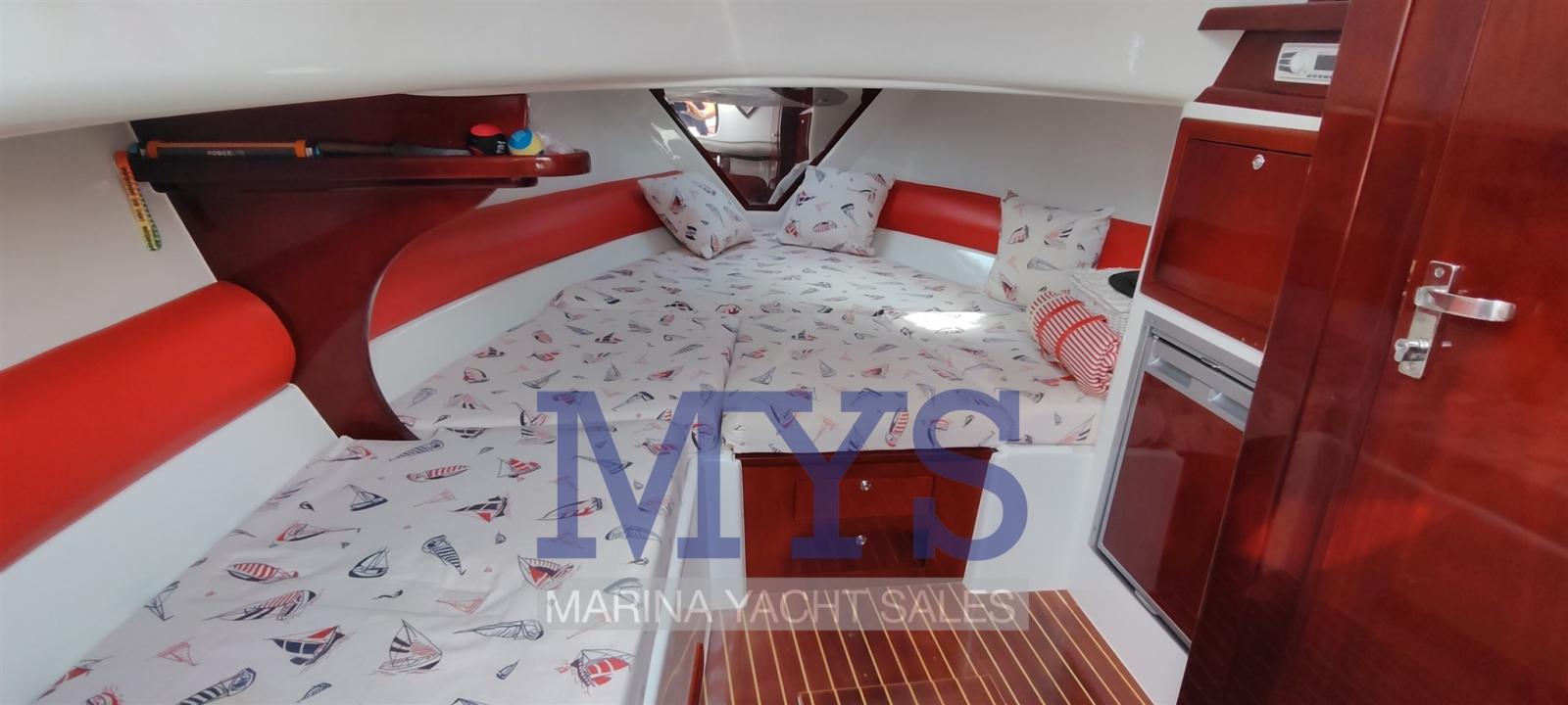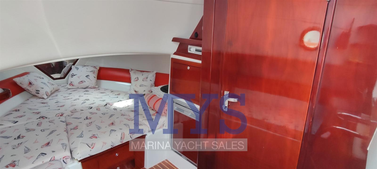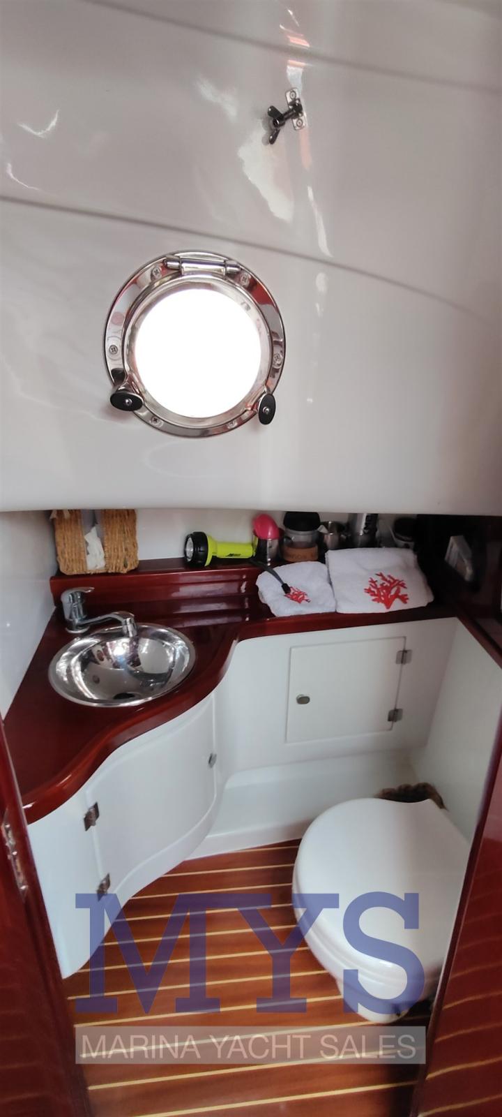 Alarme moteur, Ouverture du compartiment moteur électrique, Eau sous pression, Passavant en teck, Câble d’alimentation à quai, Couleur spéciale (rosso), Douche de cockpit, Lavabo dans le cockpit, Éclairage de courtoisie, Défenses, Plateforme arrière, Pompe de cale automatique, Porte latérale, Cockpit en teck, Prise de quai, Rollbar, Guindeau électrique, Echelle de bain, table de cockpit, Corne.