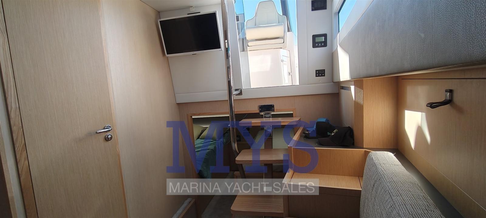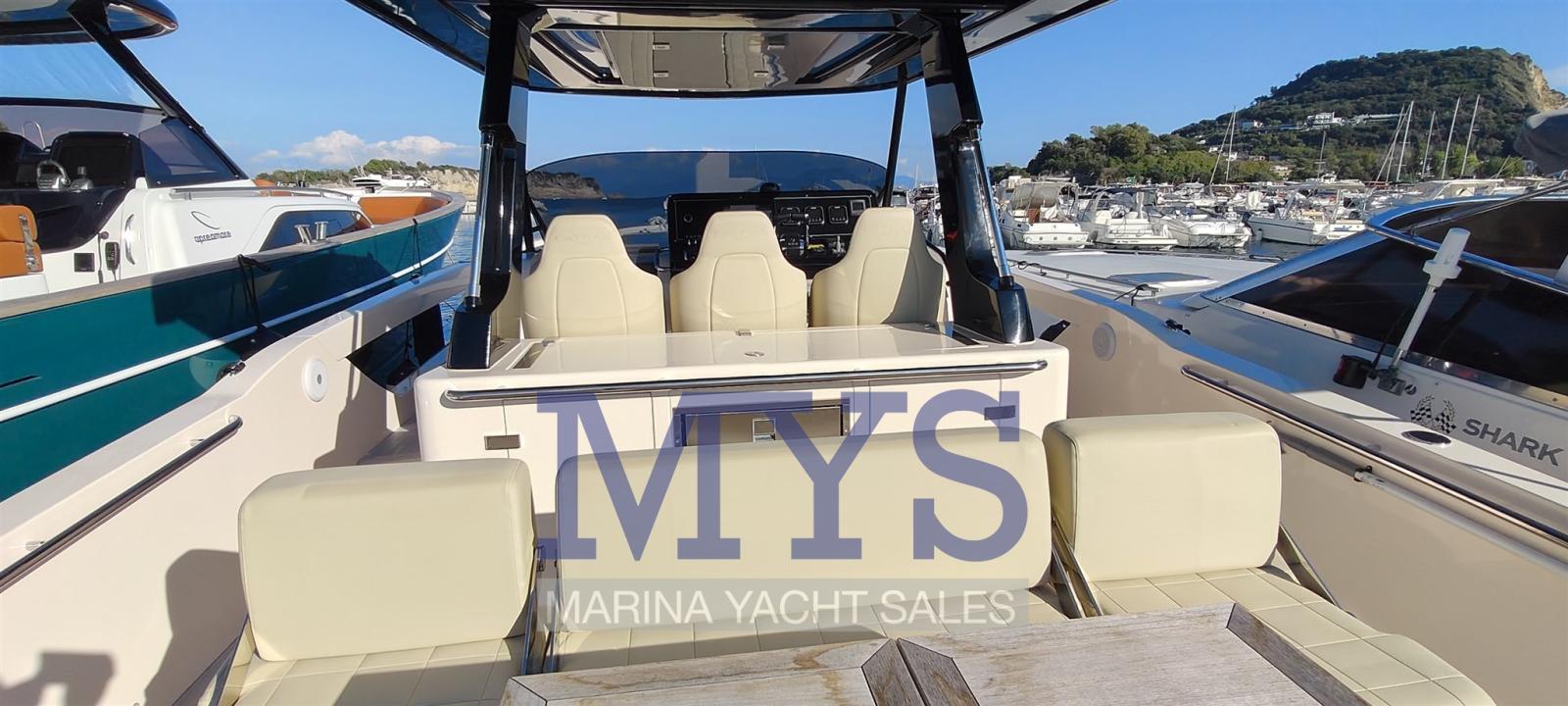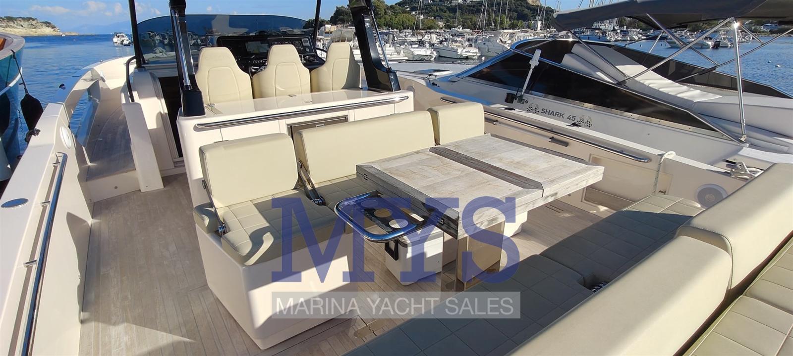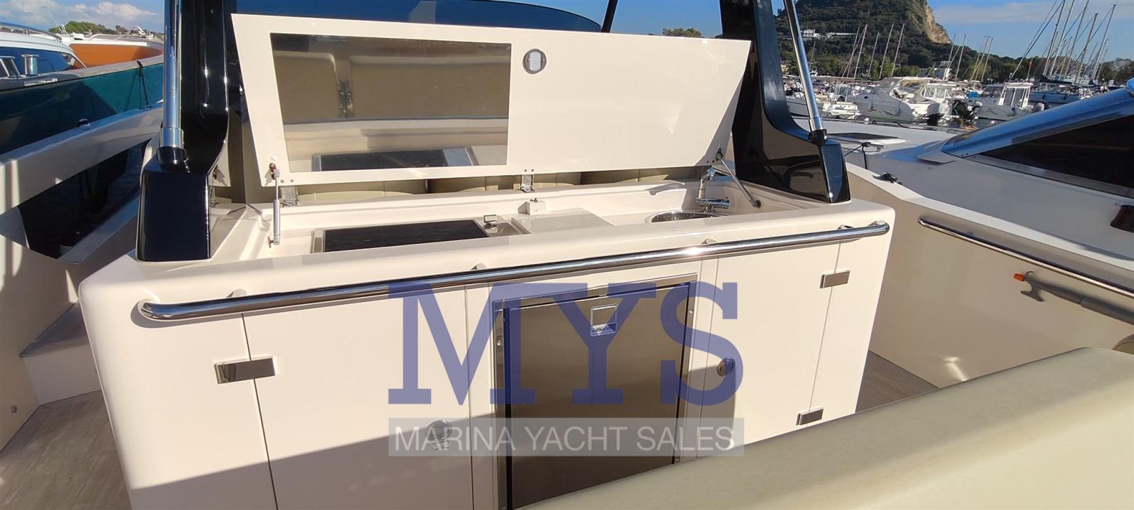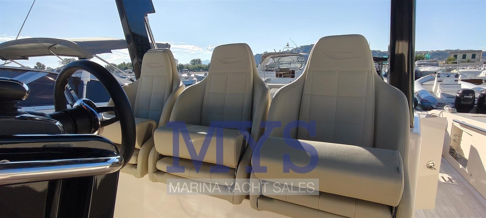 Alarme moteur, Alarme de pompe de cale, Alternateur, Eau sous pression, Trim hydraulique, Câble d’alimentation à quai, Douche de cockpit, Flaps hydrauliques, Extincteur(s) fixe(s), Indicateurs de flaps, Lavabo dans le cockpit, Éclairage de courtoisie, Défenses, Pompe de cale automatique, Pompe de cale manuelle, Porte latérale, Cockpit en teck, Prise de quai, Guindeau électrique, Echelle de bain, table de cockpit, Corne, T-Top.