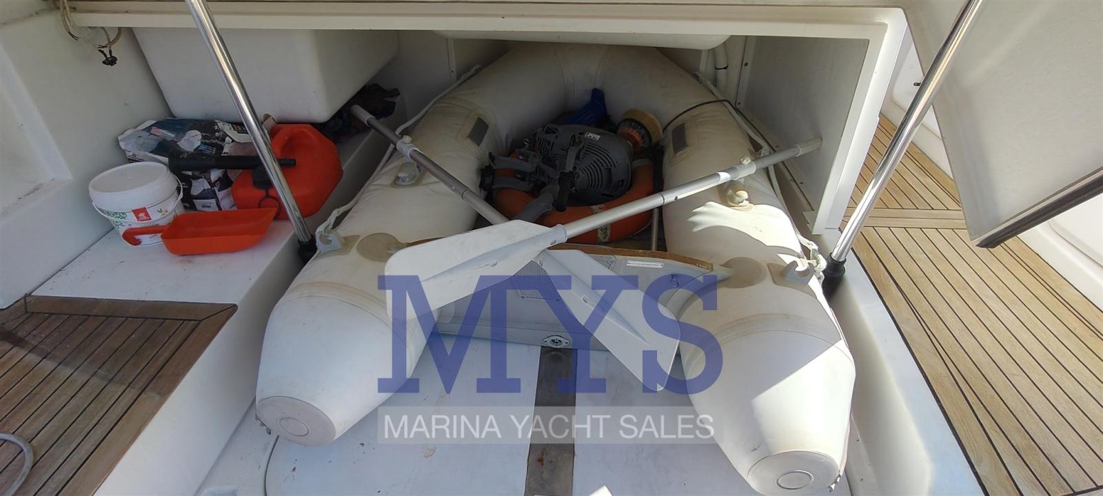 Alarme moteur, Alarme de pompe de cale, Ouverture du compartiment moteur électrique, Eau sous pression, Douche de cockpit, 2 Flaps hydrauliques (Bennett), Garage à annexe, Hard top, Indicateurs de flaps, Lavabo dans le cockpit, Éclairage de courtoisie, Passerelle (a scomparsa besenzoni), Plateforme arrière, Pompe de cale automatique, Porte latérale, Cockpit en teck (rifatto 2021), Prise de quai, Guindeau électrique, Echelle de bain, Système de filtration des eaux usées, table de cockpit, Table pliante de salon, Annexe, Corne, T-Top.