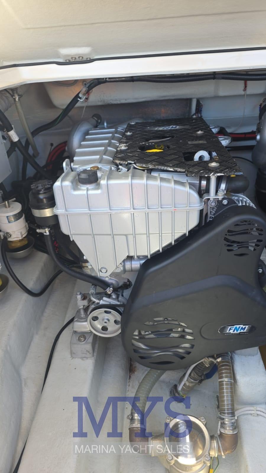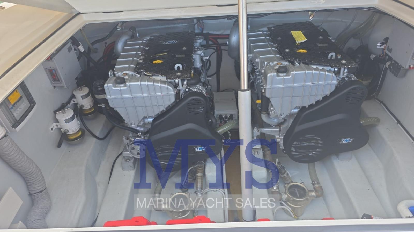 Alarme gaz, Alarme moteur, Alarme de pompe de cale, Ancre (75 mt catena), Eau sous pression, Douche de cockpit, Éclairage de courtoisie, Spots sous-marins, Passerelle (con teak), 3 Pompe de cale automatique, Cockpit en teck, Prise de quai, Guindeau électrique, Echelle de bain, table de cockpit (smontabile), Corne.