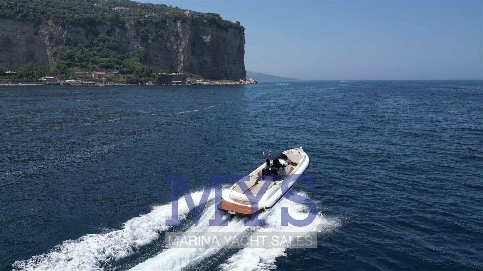 Bimini (prua e poppa con pali in carbonio), Sellerie complète, Coussins arrieres (con copertura), Coussin avant, sellerie de cockpit, Taud de console, Taud de siège.