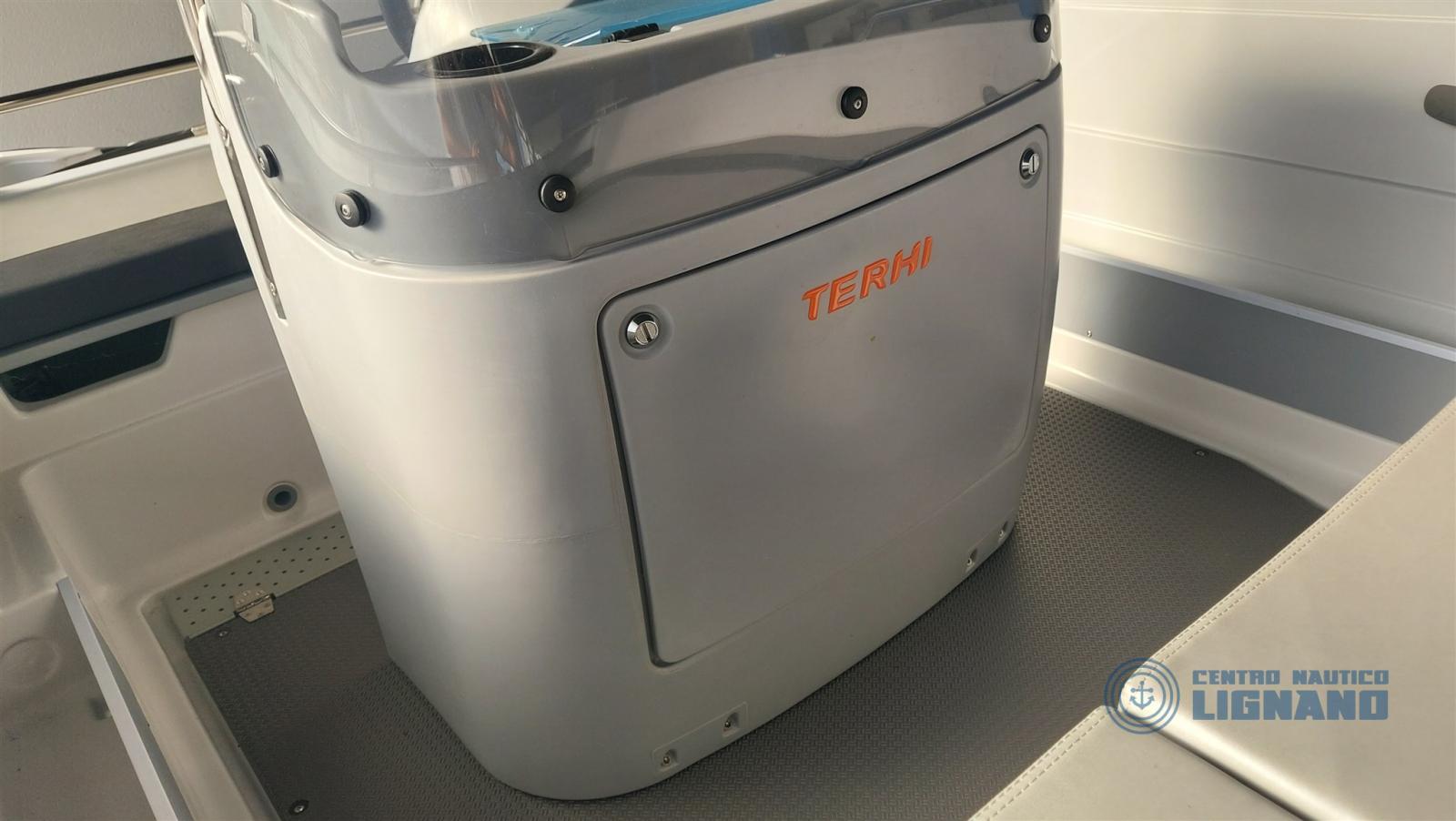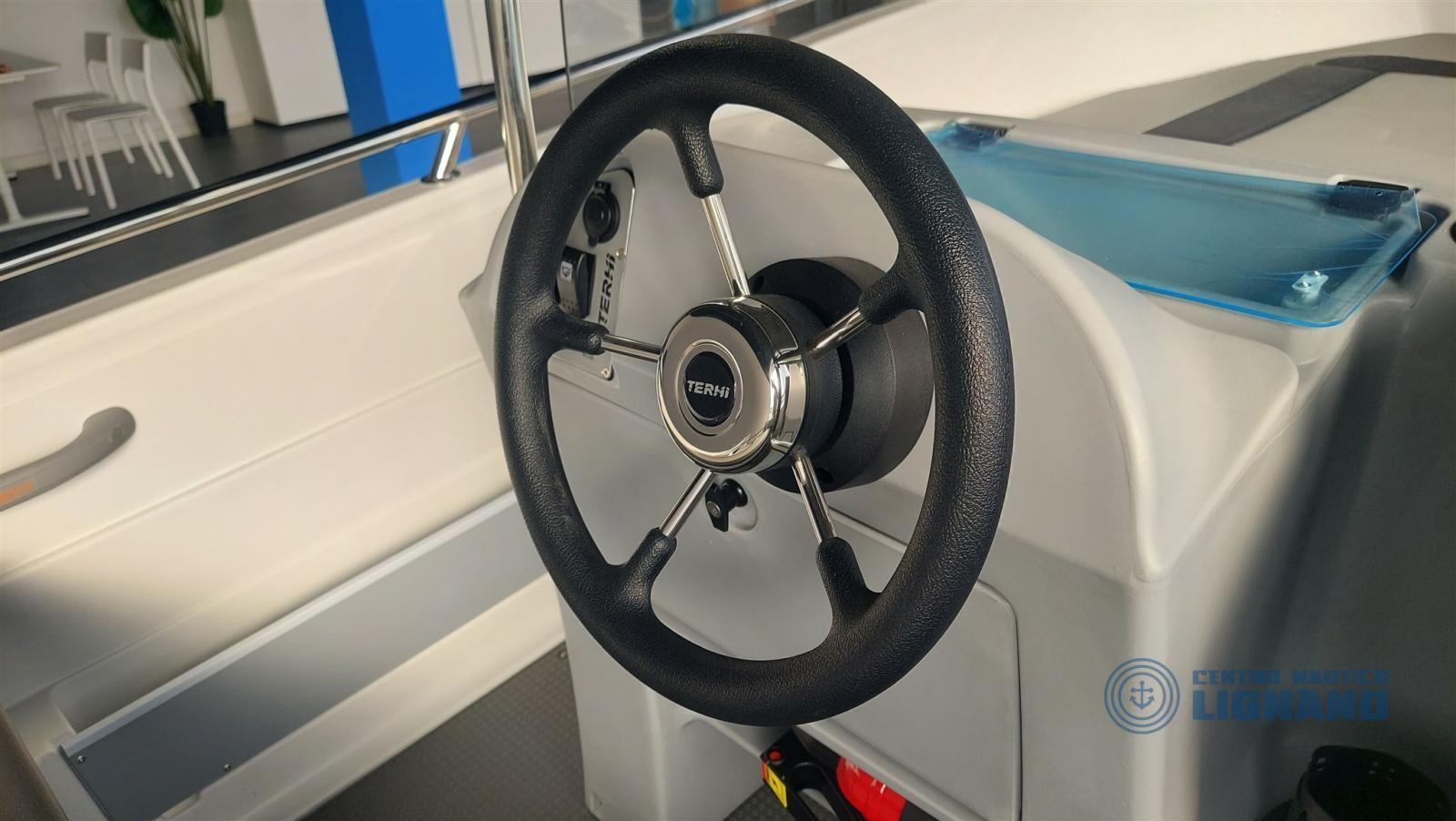 La nouvelle console centrale Terhi 450 2025 est prête à être livrée, avec un ensemble de coussins, un bain de soleil, une main courante et plus encore. Bateau finlandais insubmersible, célèbre pour ses qualités nautiques.