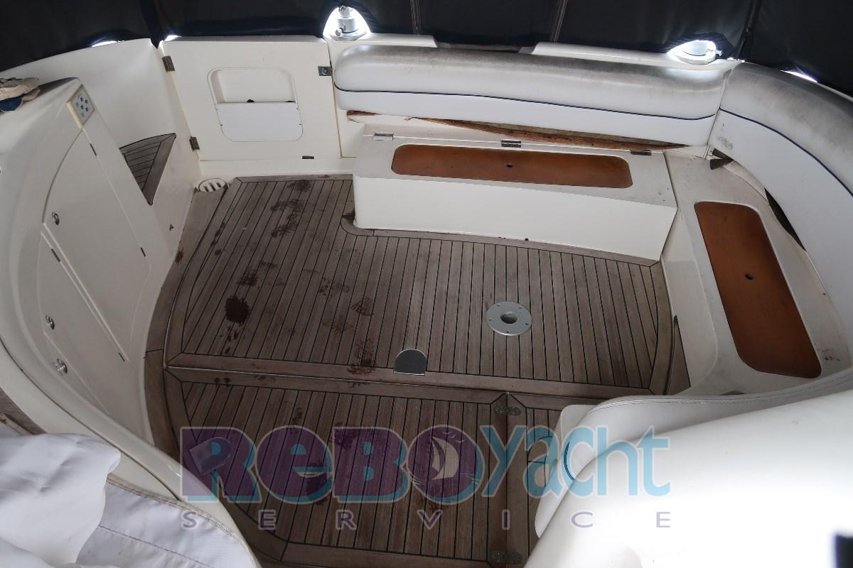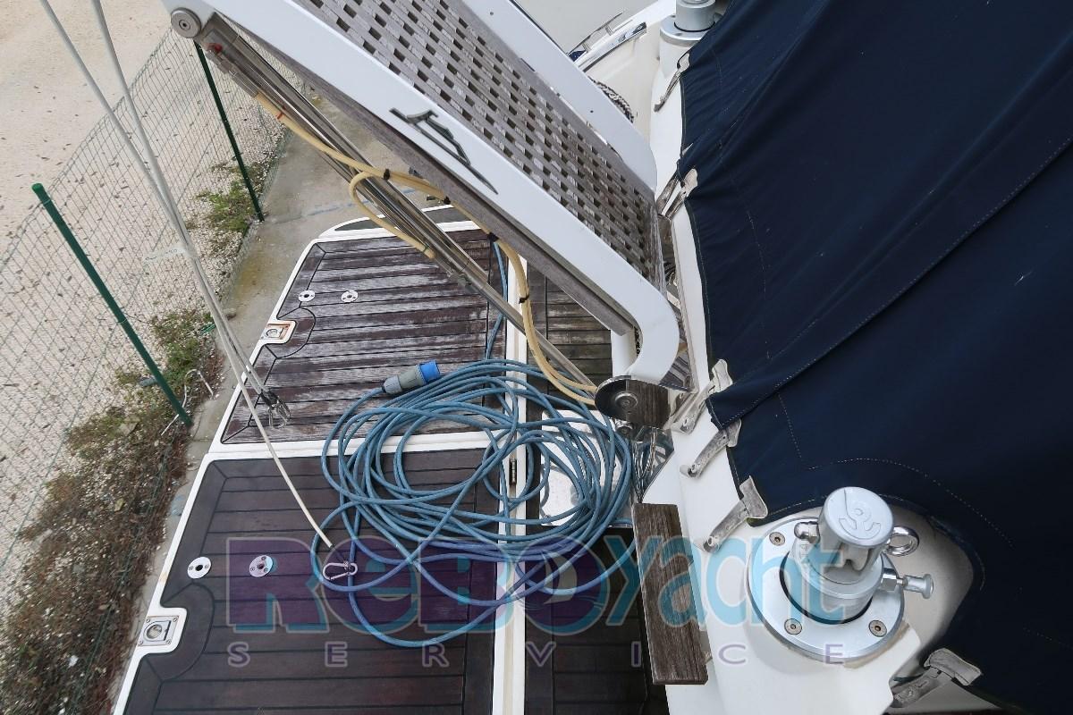 Eau sous pression, Douche de cockpit, Flaps hydrauliques, Bossoirs pour annexe (a scomparsa), Lavabo dans le cockpit, Passerelle (idraulica), Plateforme arrière (teak), Cockpit en teck, Prise de quai, Guindeau électrique, Selles pour Annexe, table de cockpit.