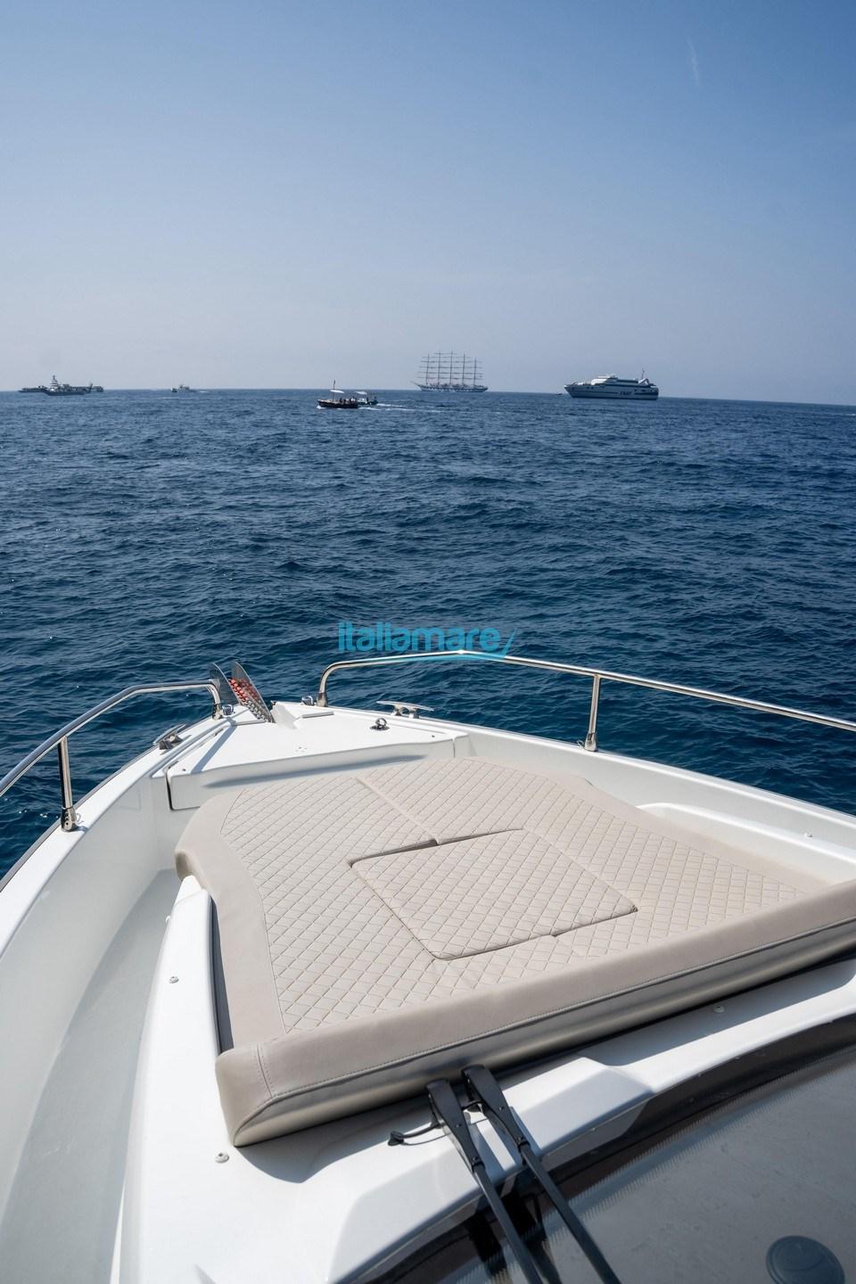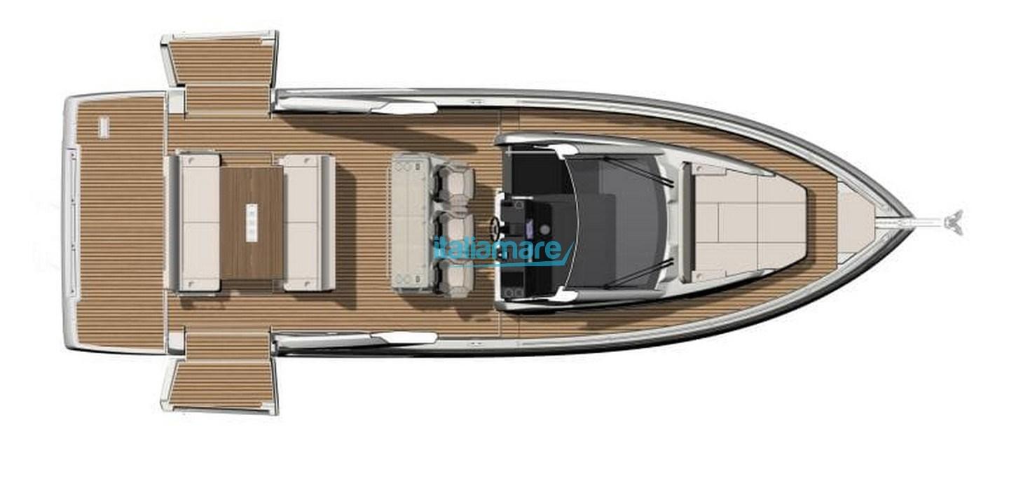 Les passagers ne sont pas oubliés à bord de ce bateau sportif, mais protecteur, avec un grand pare-brise intégré, deux sièges confortables à côté du pilote, deux terrasses modulables qui se font face, qui peuvent être retirées pour une ouverture sur la mer... Et pour ceux qui aiment les éclaboussures de la mer, une terrasse à l’avant est accessible par deux passages latéraux sécurisés et encastrés.