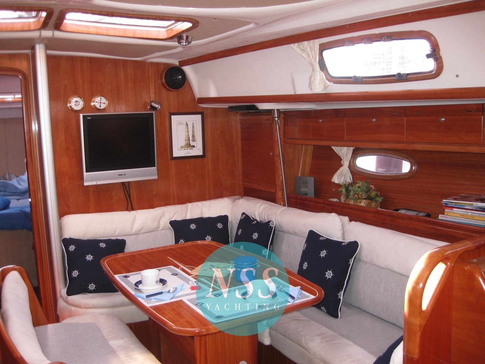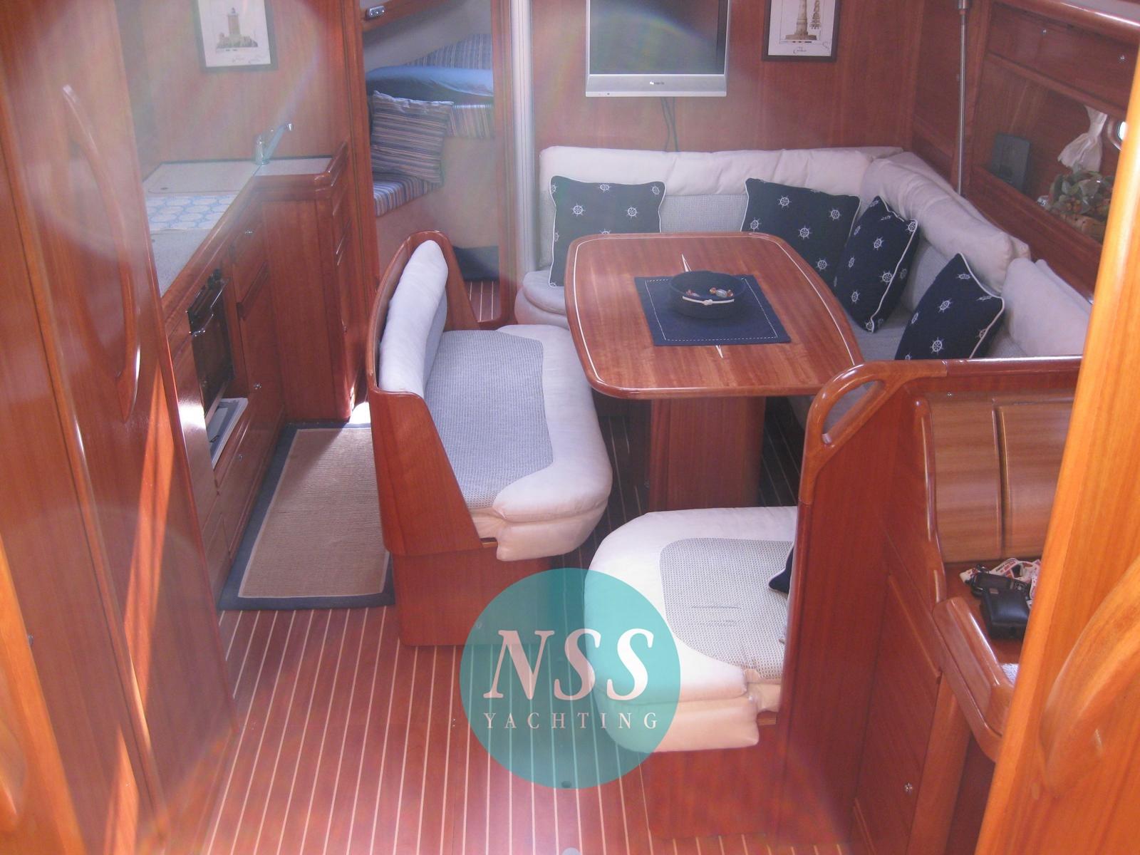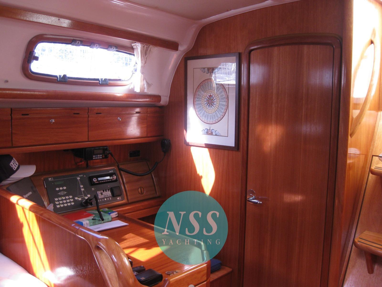 Alarme moteur, Eau sous pression, Passavant en teck, Douche de cockpit, Éclairage de courtoisie, Passerelle, Pompe de cale manuelle, Cockpit en teck, Prise de quai, Guindeau électrique, Echelle de bain, Chaise support HB, table de cockpit, Windex.
