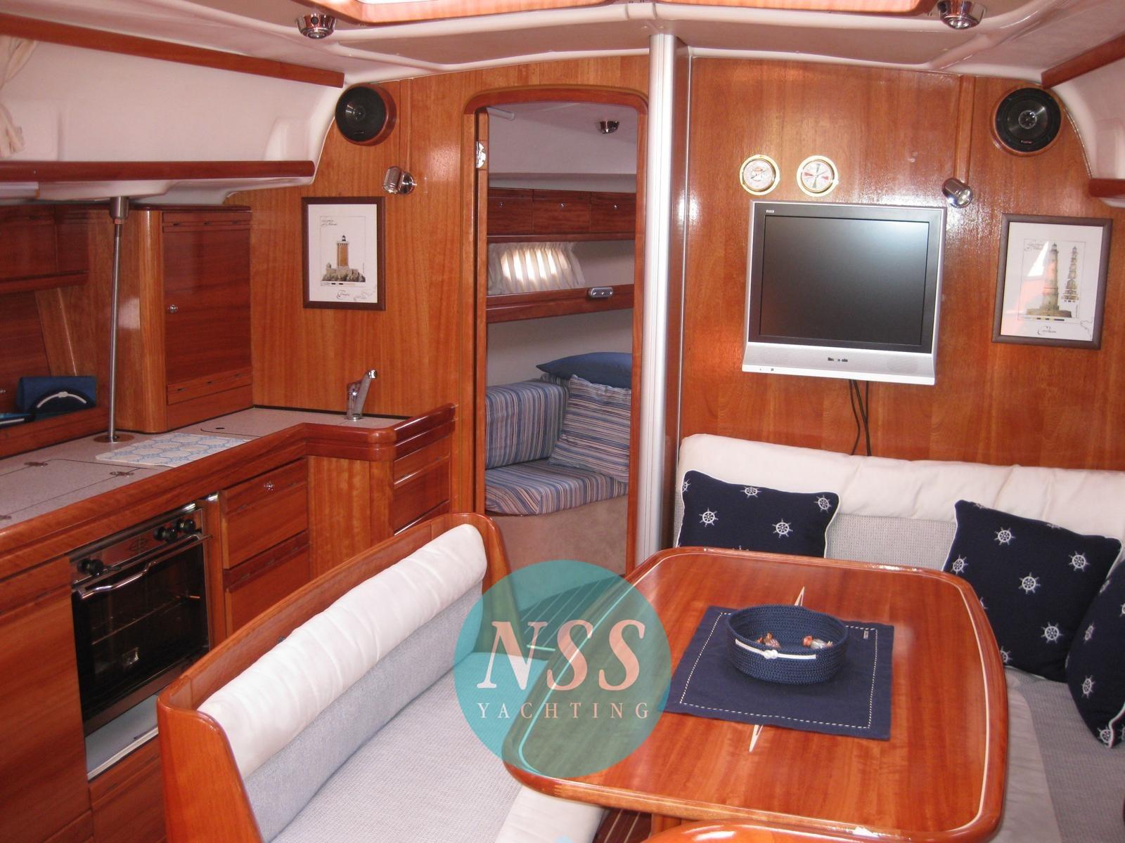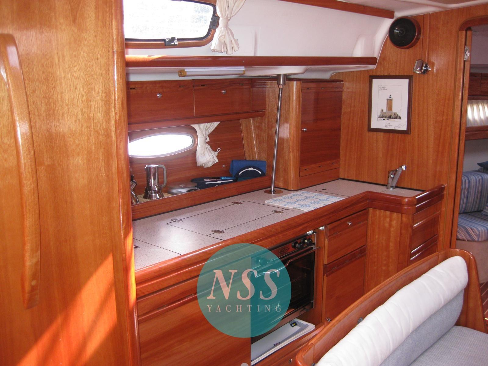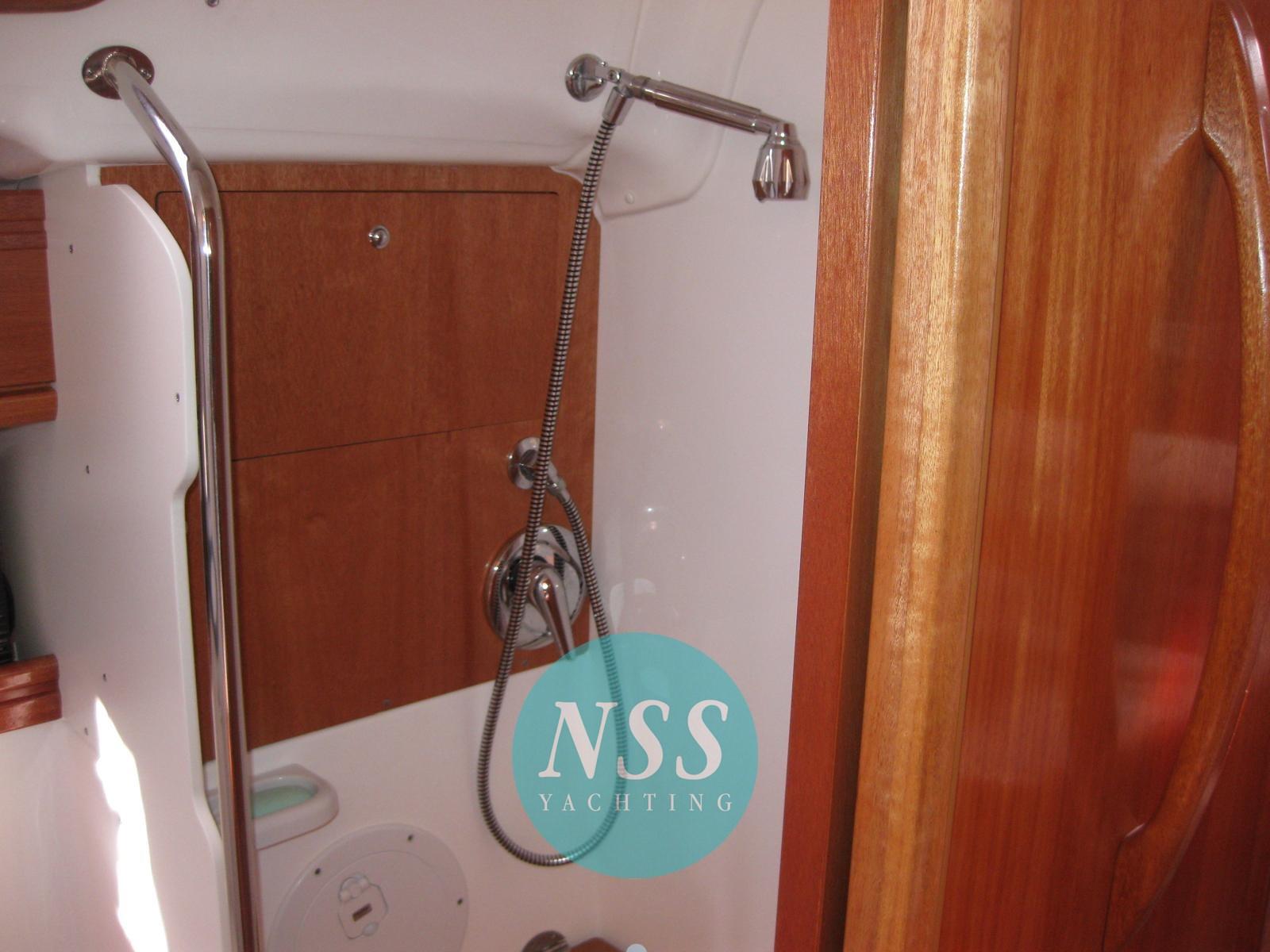 Alarme moteur, Eau sous pression, Passavant en teck, Douche de cockpit, Éclairage de courtoisie, Passerelle, Pompe de cale manuelle, Cockpit en teck, Prise de quai, Guindeau électrique, Echelle de bain, Chaise support HB, table de cockpit, Windex.