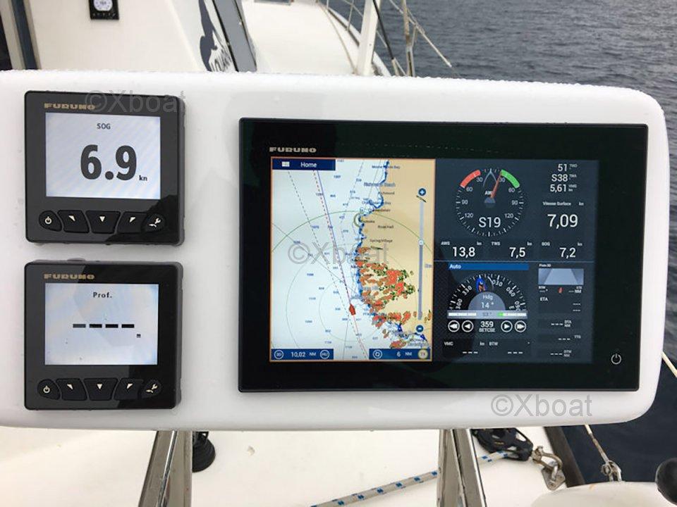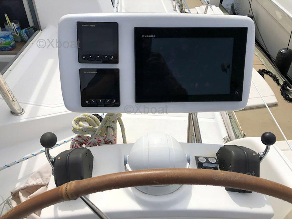 Un jeu de voiles de 2017 comprenant grand voile, solent et gennaker permet une navigation plutôt dynamique avec une visibilité parfaite grace aux 2 postes de barres sur console à l'arrière. Les 2 dérives offrent une remontée au vent très appréciable.
