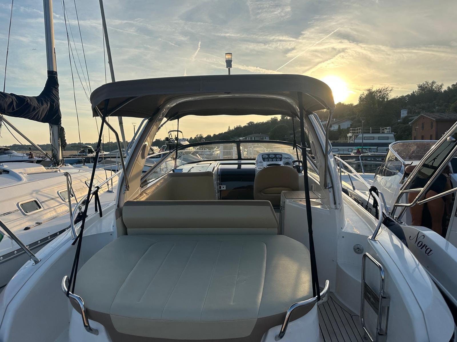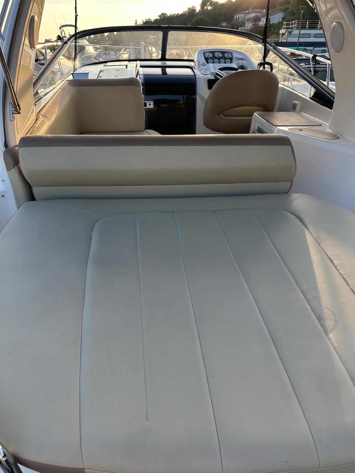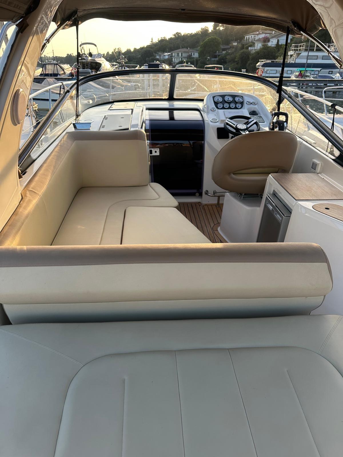 Alarme moteur, Ouverture du compartiment moteur électrique, Eau sous pression, Douche de cockpit, Flaps électriques, Extincteur(s) fixe(s), Lavabo dans le cockpit, Éclairage de courtoisie, Spots sous-marins, Défenses, Plateforme arrière, Cockpit en teck, Prise de quai, Rollbar, Guindeau électrique, Echelle de bain, table de cockpit, Table pliante de salon, Corne.