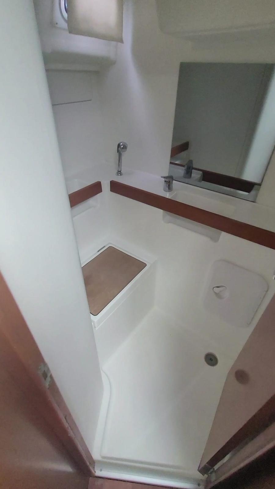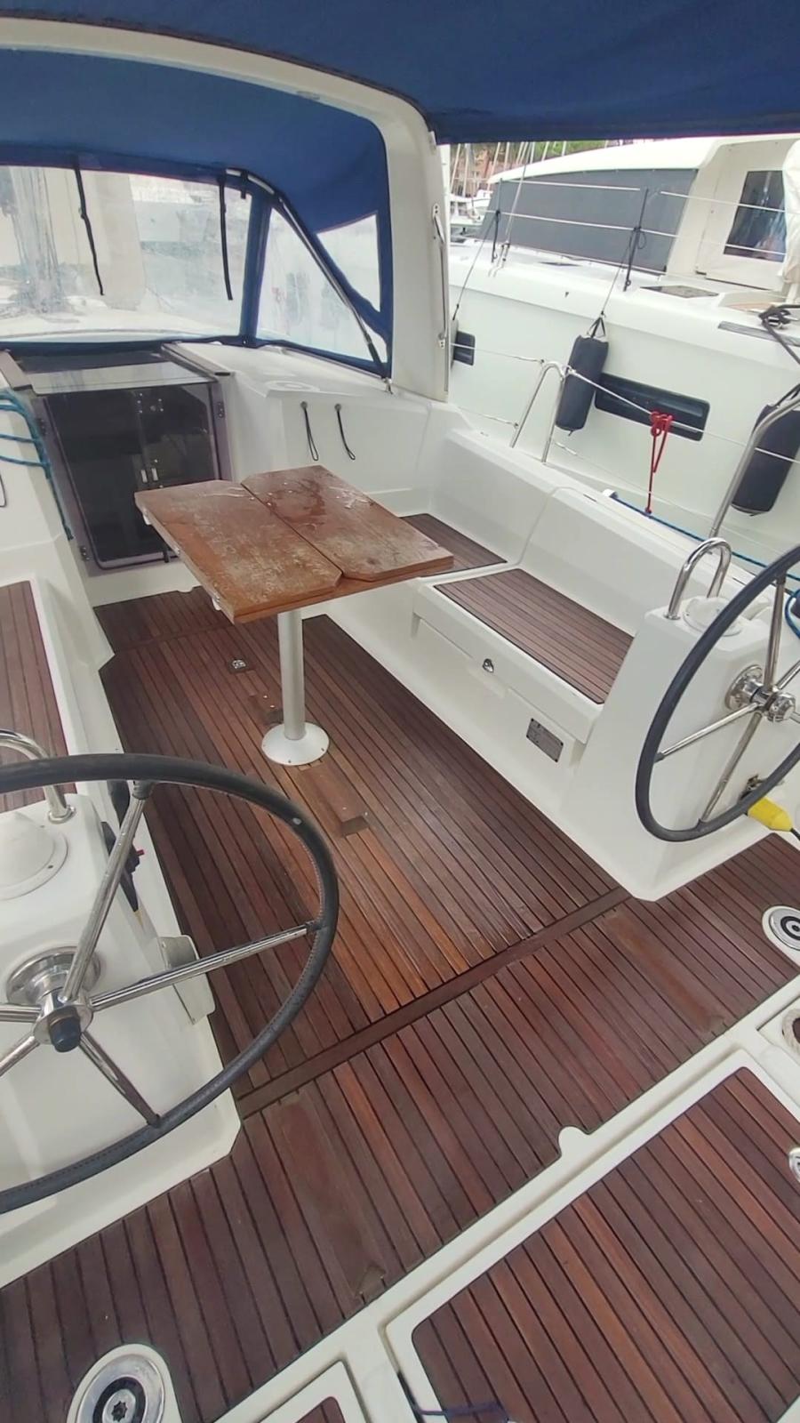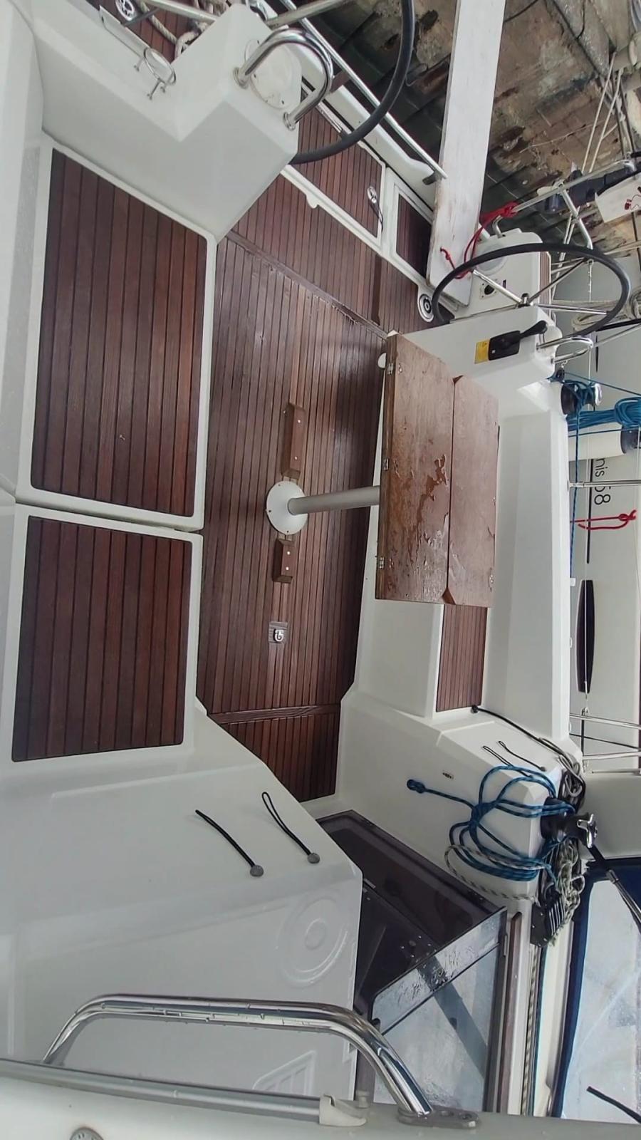 Alarme moteur, Ancre (+70 mt catena), Eau sous pression, 3 Batteries, Douche de cockpit, Pompe de cale manuelle, Guindeau électrique, table de cockpit, Windex.