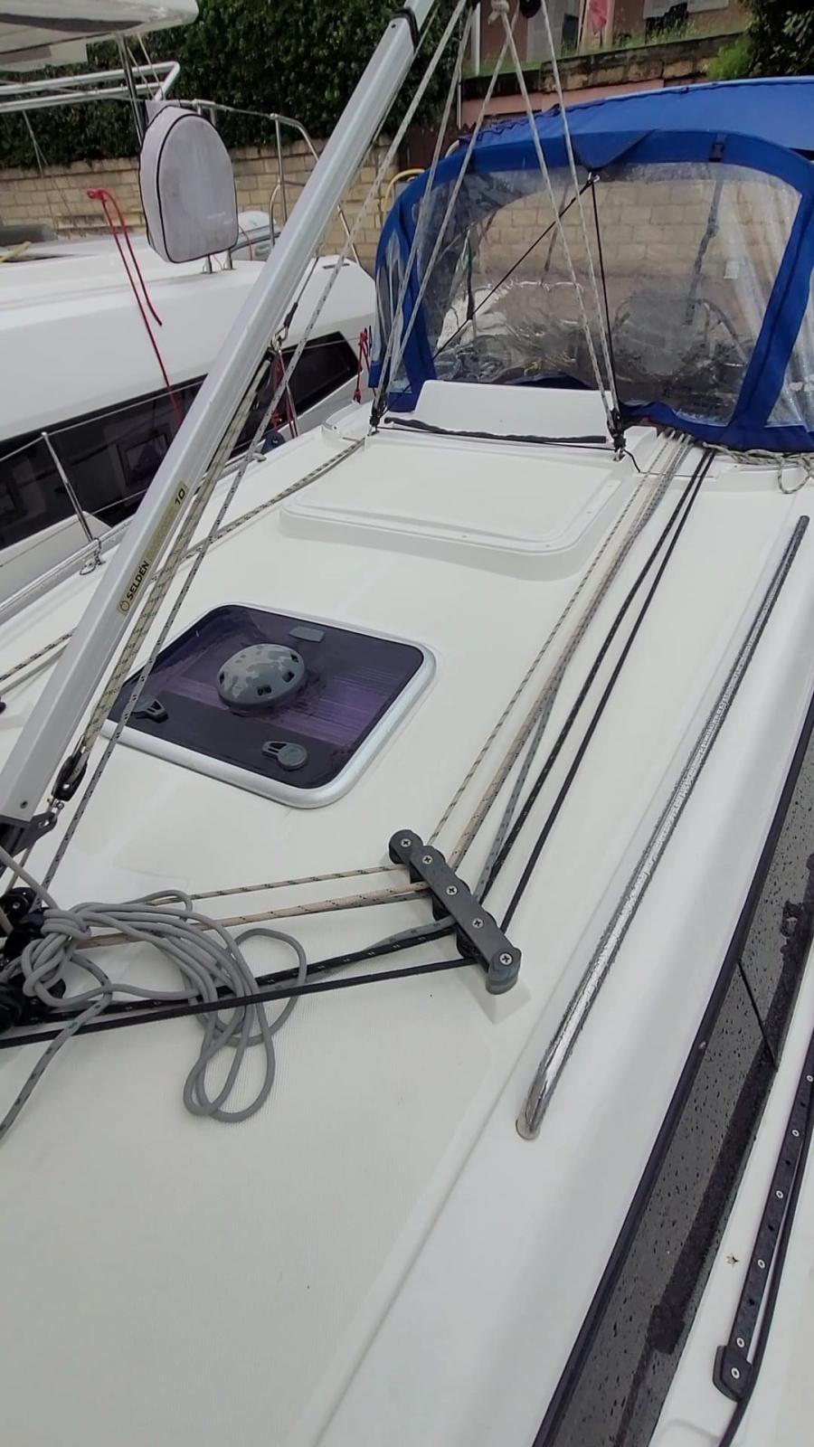 Lazy jack, lazy bag, Annexe avec quille rigide et deux rames - Gonfleur - Petite ancre avec câble de 15 m - Réservoir d’huile moteur - Auvent - Manivelles de treuil - Cordes (1X50m ; 1x25m ; 3x15m) - Chaise de maître d’équipage - Bouteilles de gaz (gaz inclus) - Table - Câble 220V avec batterie - Coussins de cockpit - Chaudière