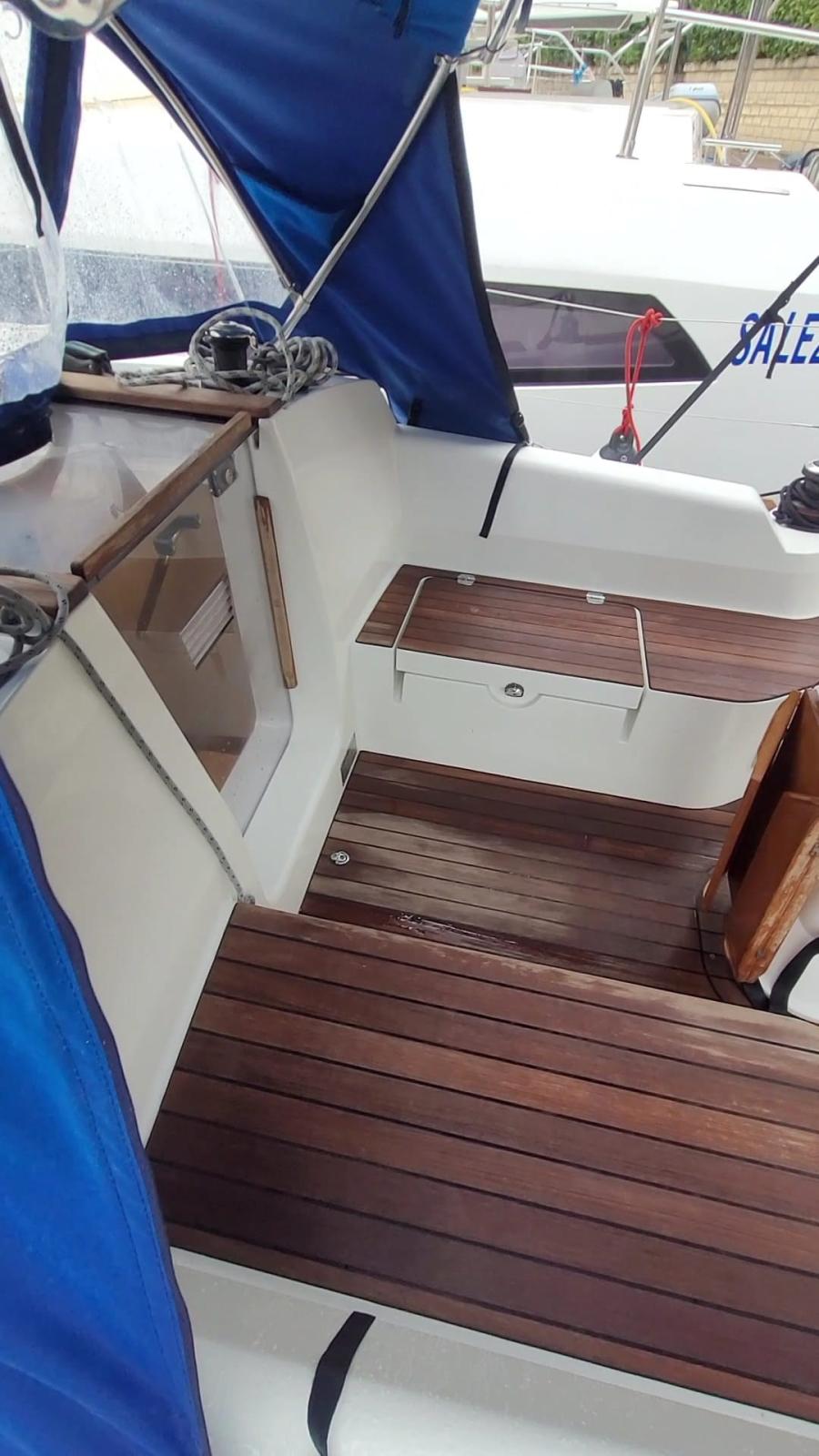 Douche de cockpit, Défenses, Pompe de cale automatique, Cockpit en teck, Prise de quai, Guindeau électrique, Windex.