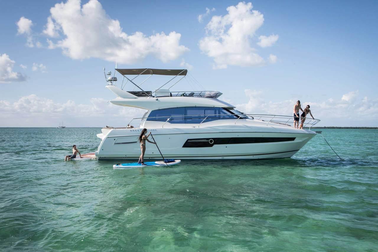 A l’extérieur, la PRESTIGE 460 adopte la signature des dernières PRESTIGE et arbore les immenses vitrages de coque continus et agrandis. Ce Flybridge intègre le concept de cockpit en L qui permet une utilisation maximale de l’espace. Transformable en un très large bain de soleil arrière, ce cockpit peut également intégrer une cabine skipper équipée.