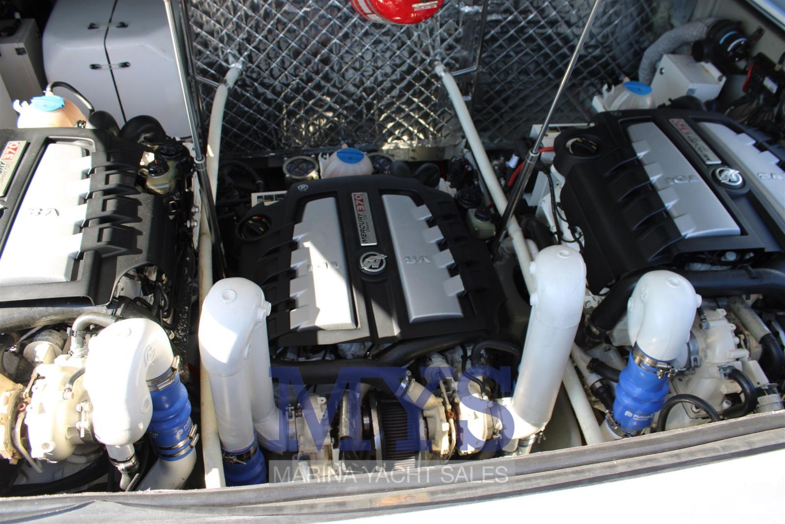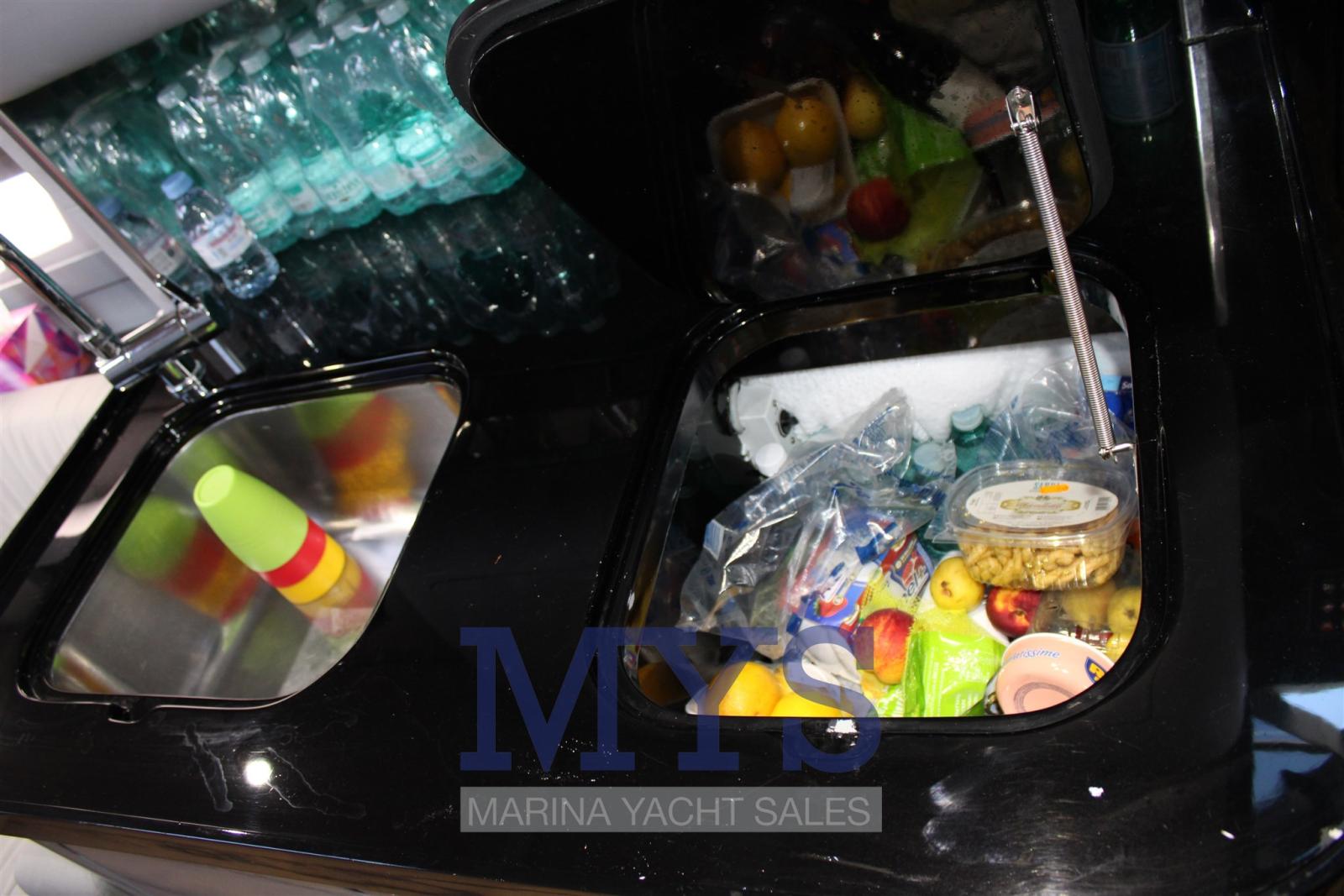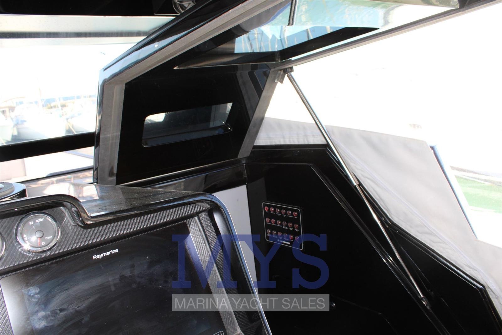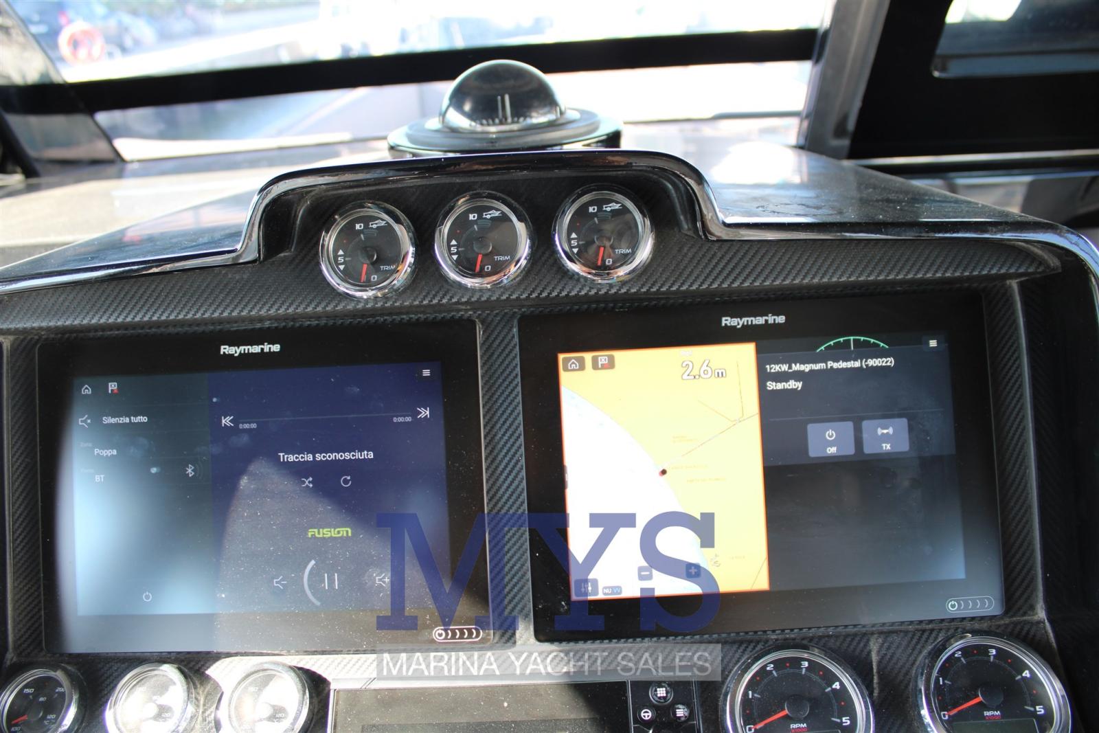 Alarme moteur, Eau sous pression, Douche de cockpit, Phares fixes arrière, Extincteur(s) fixe(s), Éclairage de courtoisie, Spots sous-marins, Plateforme arrière, Pompe de cale automatique, Cockpit en teck, Prise de quai, Rollbar, Guindeau électrique, table de cockpit, Corne.