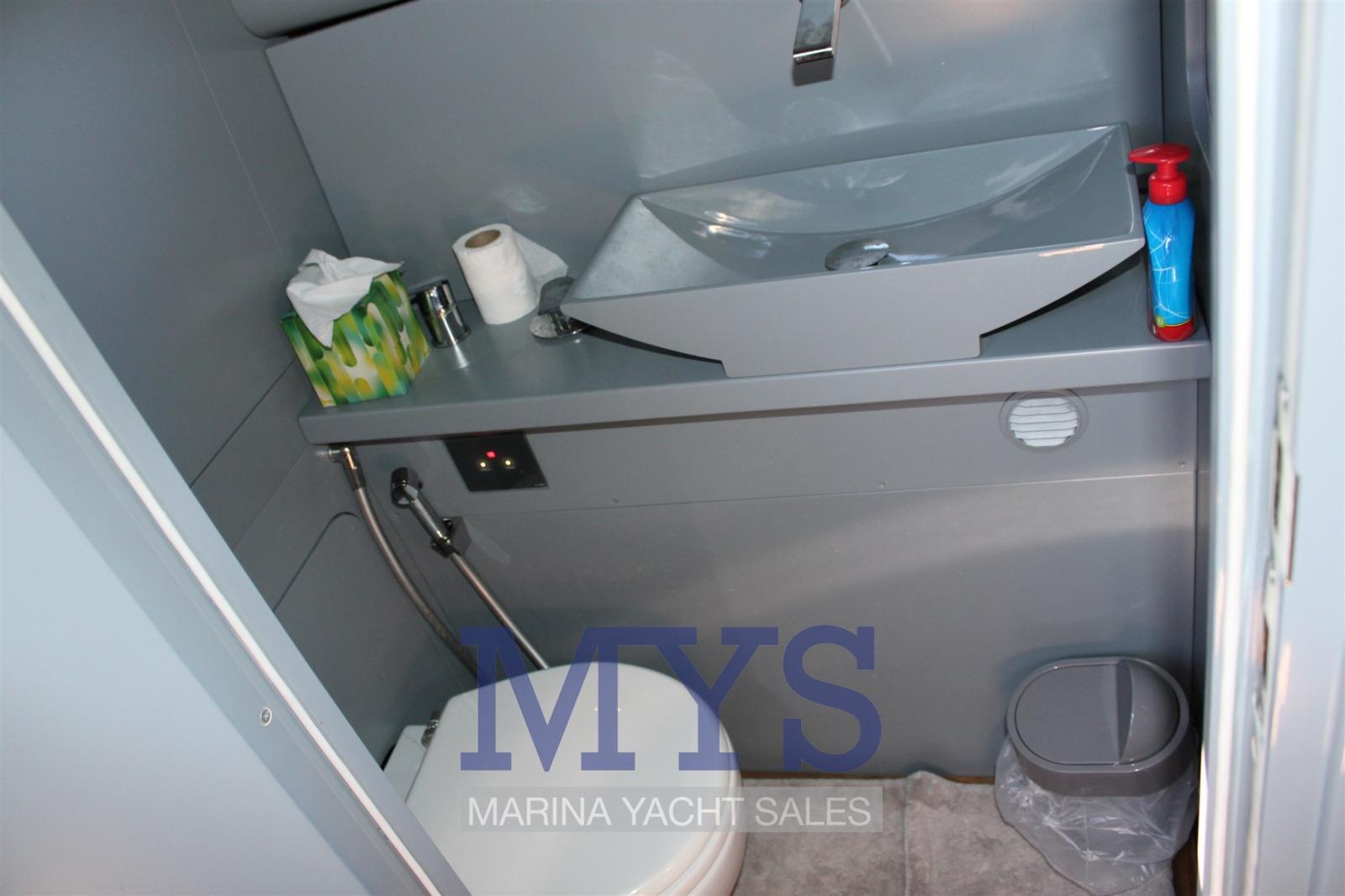 1 Salle de bain complète avec lavabo, douche et WC marins électriques