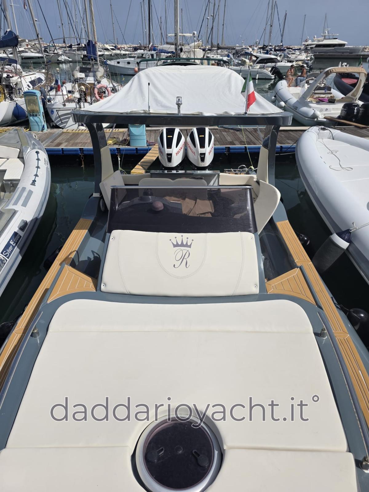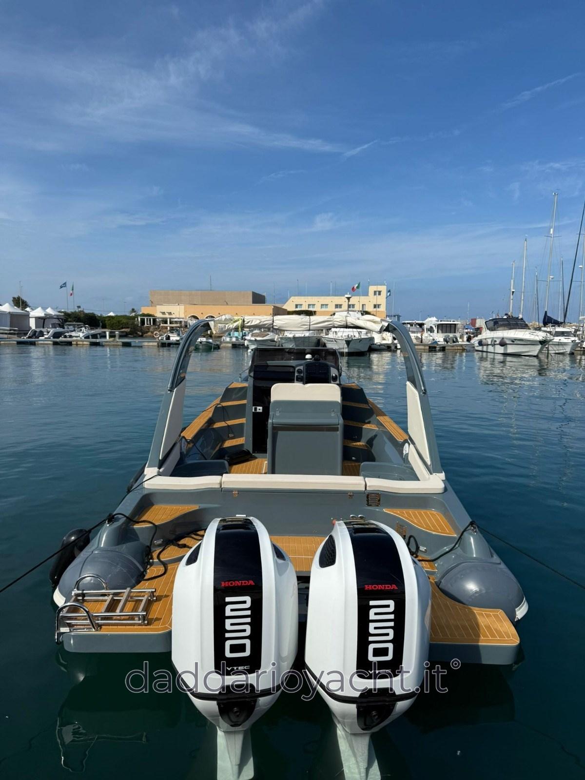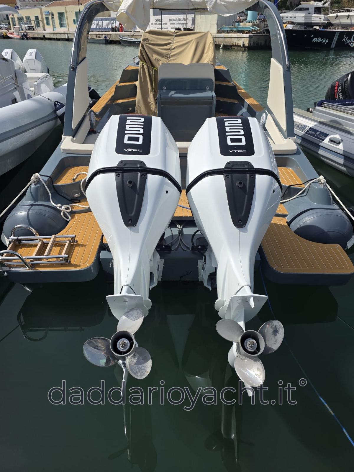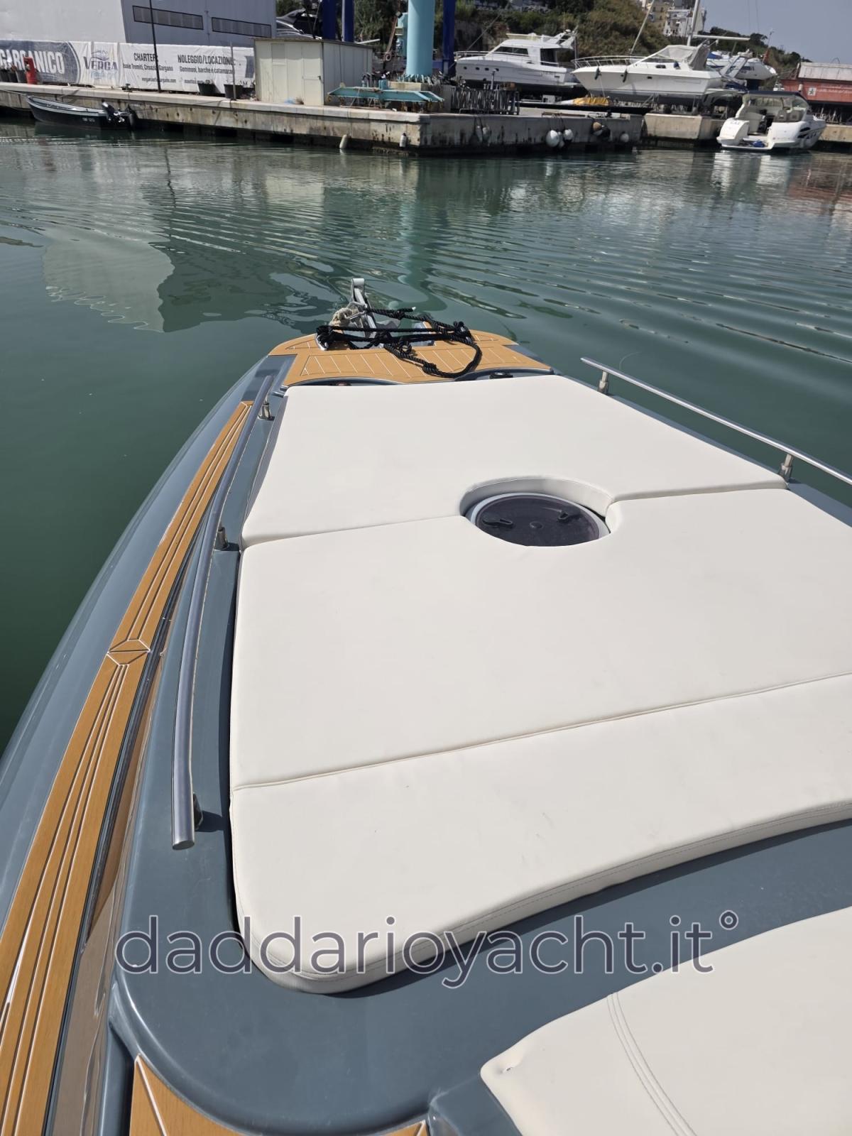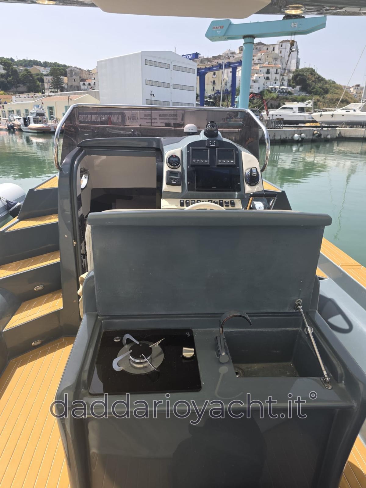 Eau sous pression, 2 Batteries (2 AVVIAMENTO+ 2 ARIA CONDIZIONATA + 2 X200AH Lifepo4), Passavant en teck (sintetico), Douche de cockpit, Lavabo dans le cockpit, Éclairage de courtoisie, Moniteur de batterie, 6 Défenses, 2 Plateforme arrière (di poppa), Cockpit en teck (sintetico), Prise de quai, Rollbar, Guindeau électrique (+comando remoto), Echelle de bain, Corne.