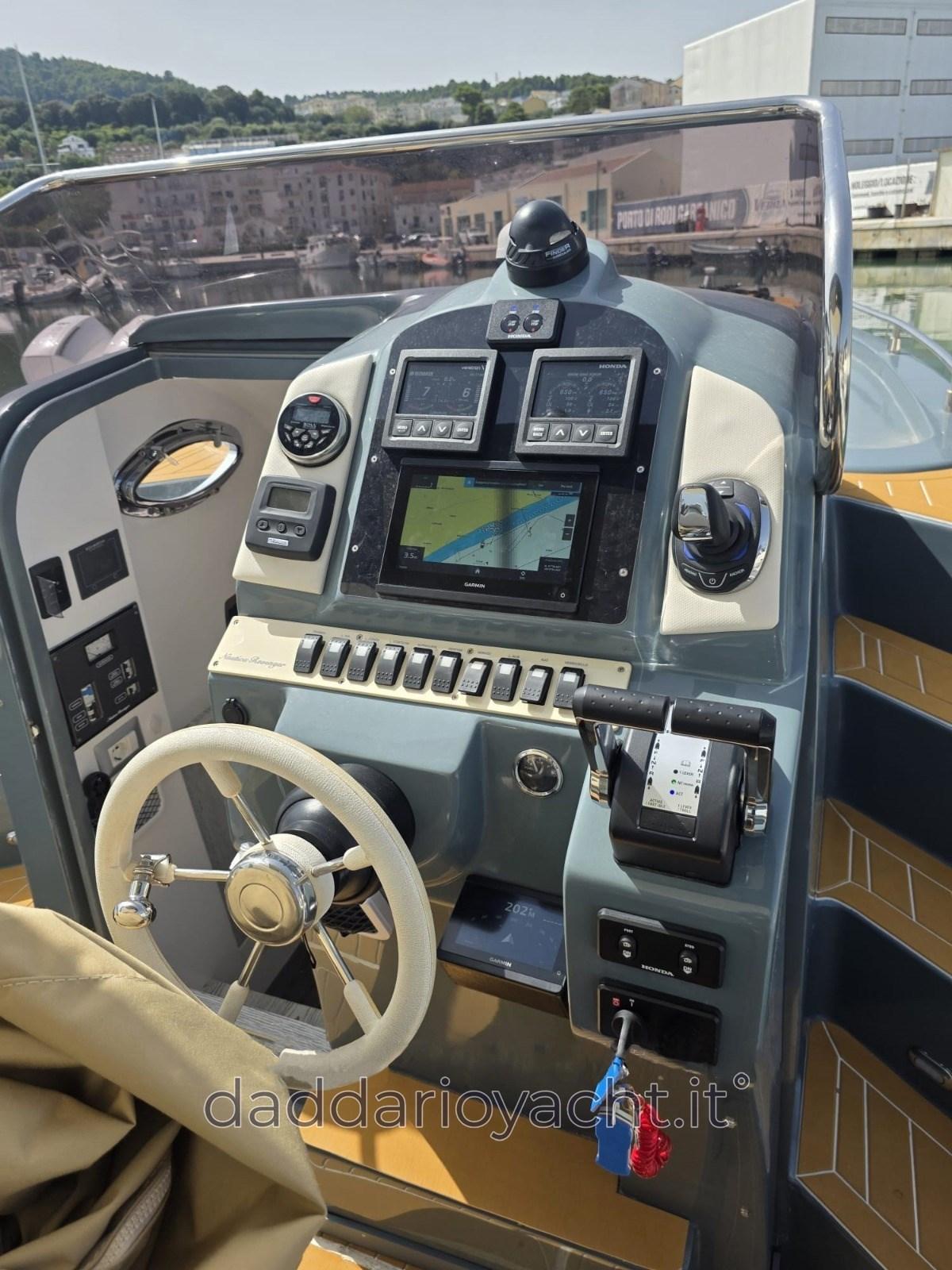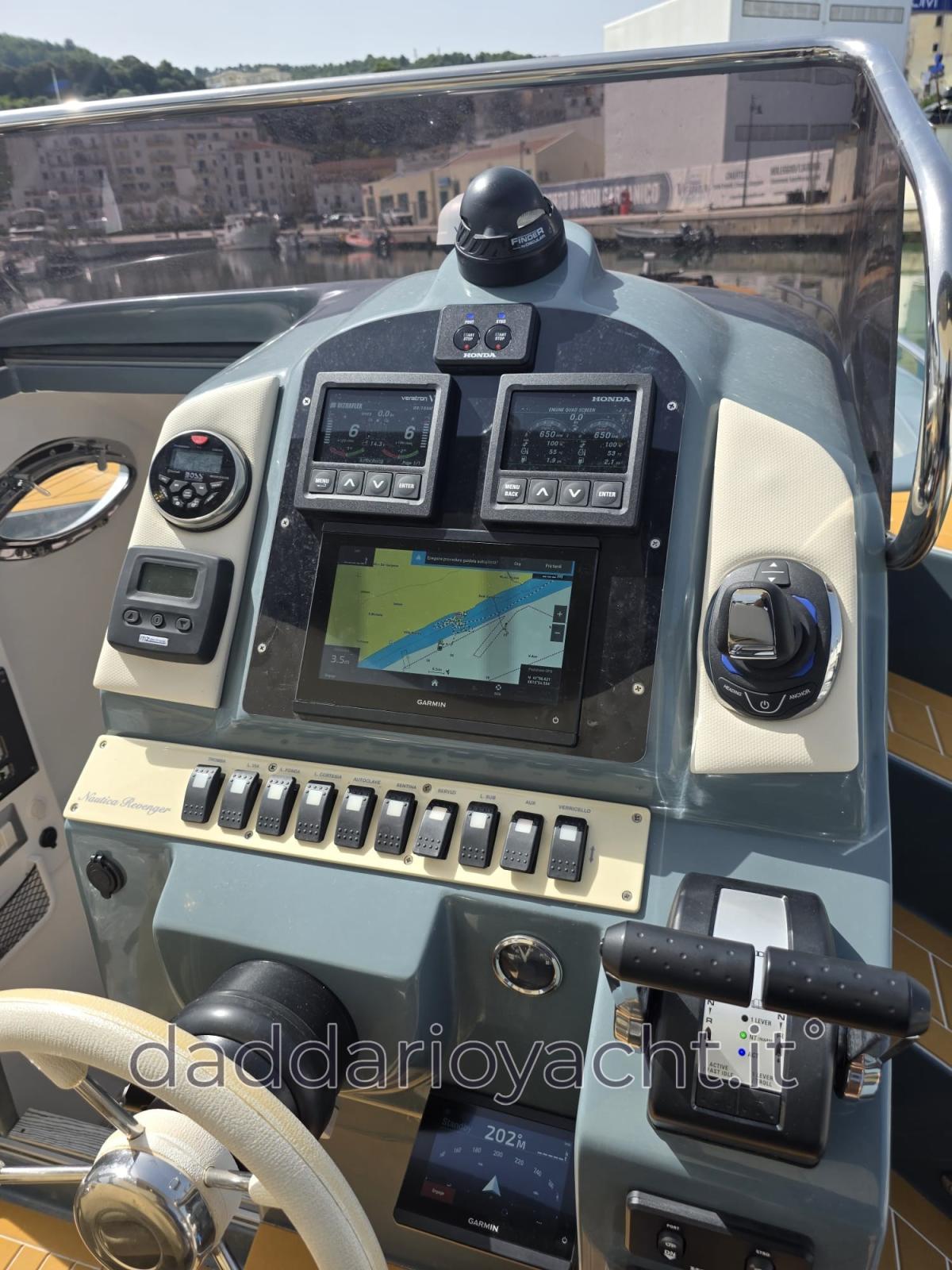 2 Ordinateur fixe de bord, Compteur de chaîne, Sondeur pêche (GARMIN GT23M-TM XDCE 8), GPS (Garmin GPSMAP 923 + CARTOGRAFIA), Joystick, Pilote automatique (REACTOR 4 GARMIN + ANCORA VIRTUALE), Radio VHF (ext).