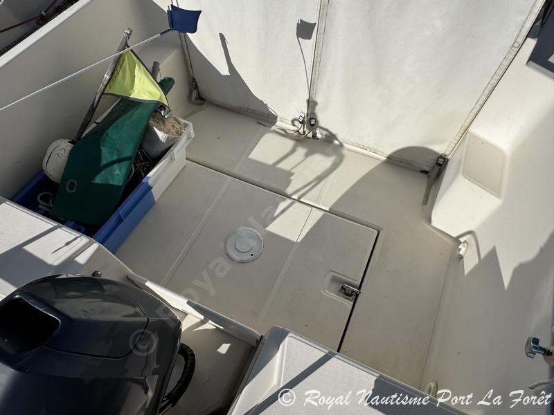 Transportable, le TIMONIER 540 Hors-bord de 5,40 mètres se manœuvre très aisément. Stable, il s' adapte parfaitement à un programme de pêche ou de balade côtière.