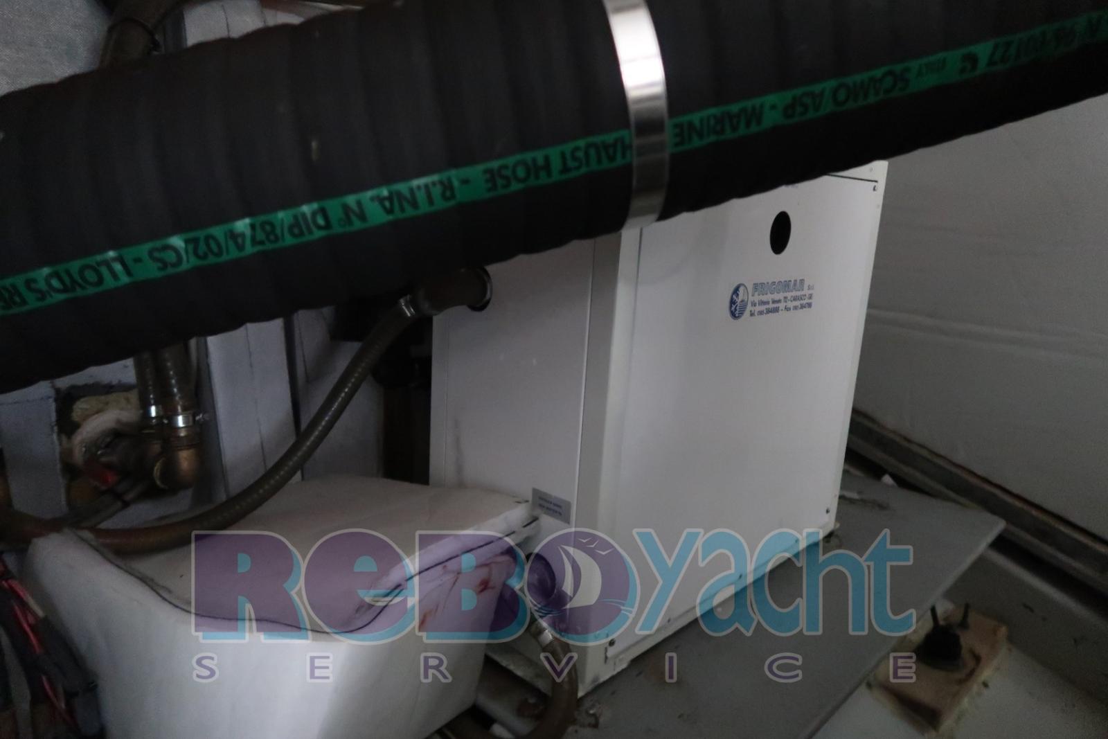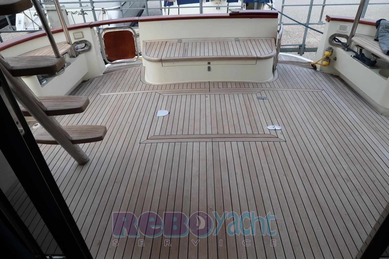 Eau sous pression, 2 Hélice de rechange, Phare de poursuite, Flaps hydrauliques, Passerelle (idraulica), Plateforme arrière (allungata con teak nuovo), Pont en teck, Cockpit en teck, Prise de quai, Selles pour Annexe, table de cockpit.