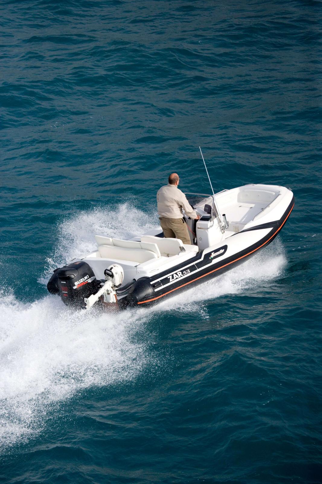 C’est le ZAR des records : 8 places assises, deux lits doubles, 8 coffres de rangement et une série de combinaisons sièges/lits/table incroyable. Ce bateau exceptionnel concentre sur 5,35m de longueur toutes les innovations que le « projet ZAR » a introduit en révolutionnant le concept même du « pneumatique ». Idéal pour la famille, qui peut ainsi jouir d’agréables journées (et nuits) de camping nautique en complète autonomie, le zar 53 se révèle excellant pour tout usage. Il accepte des motorisations importantes (140 hp.) offrant ainsi de remarquables performances, ou bien des puissances moindres qui ne pénalisent absolument pas le plaisir de naviguer.