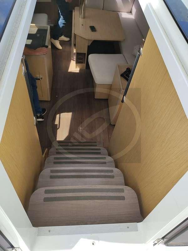À l’intérieur, le design lumineux signé Nauta Design se distingue par un aménagement modulable, des volumes généreux et une finition haut de gamme. Chaque détail est pensé pour le confort en croisière, que ce soit pour une sortie à la journée ou un long voyage.