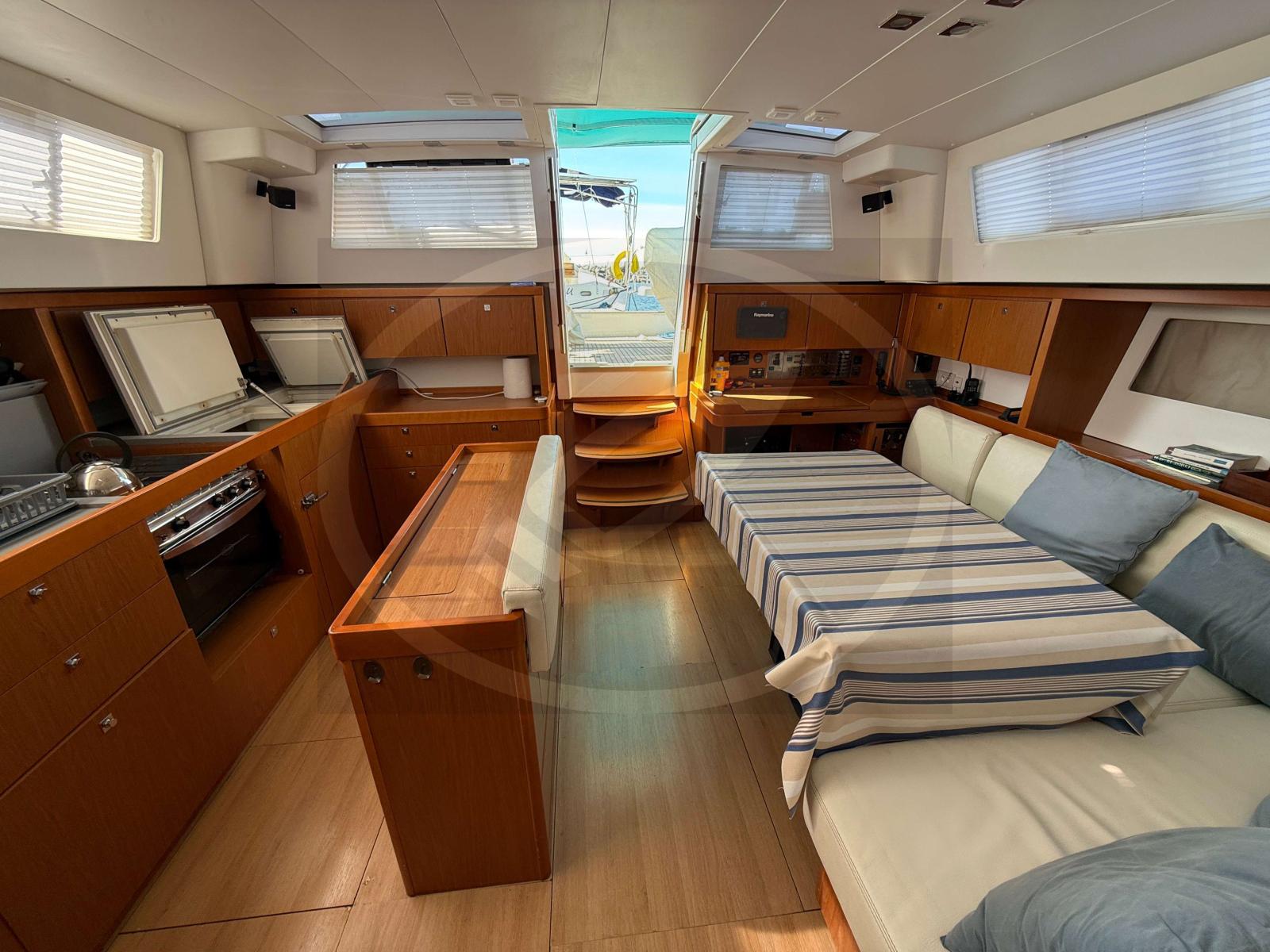 À l’intérieur, l’espace est baigné de luminosité naturelle grâce à de larges vitrages panoramiques. Cette version 3 cabines propose un aménagement luxueux et fonctionnel, idéal pour les longues croisières en toute intimité. Chaque détail, signé Nauta Design, a été pensé pour offrir une circulation fluide et une atmosphère sereine, proche de celle d'un loft flottant.