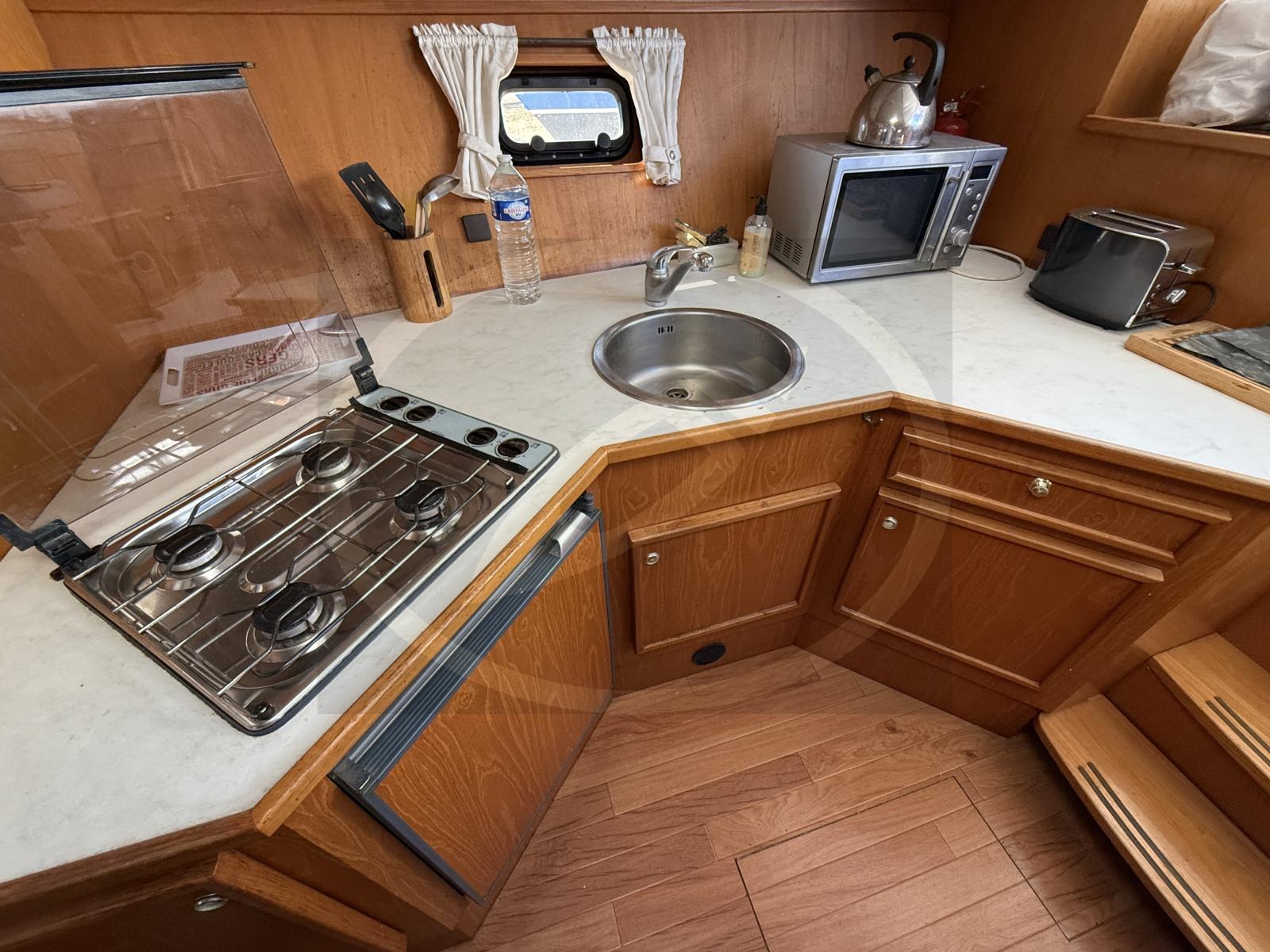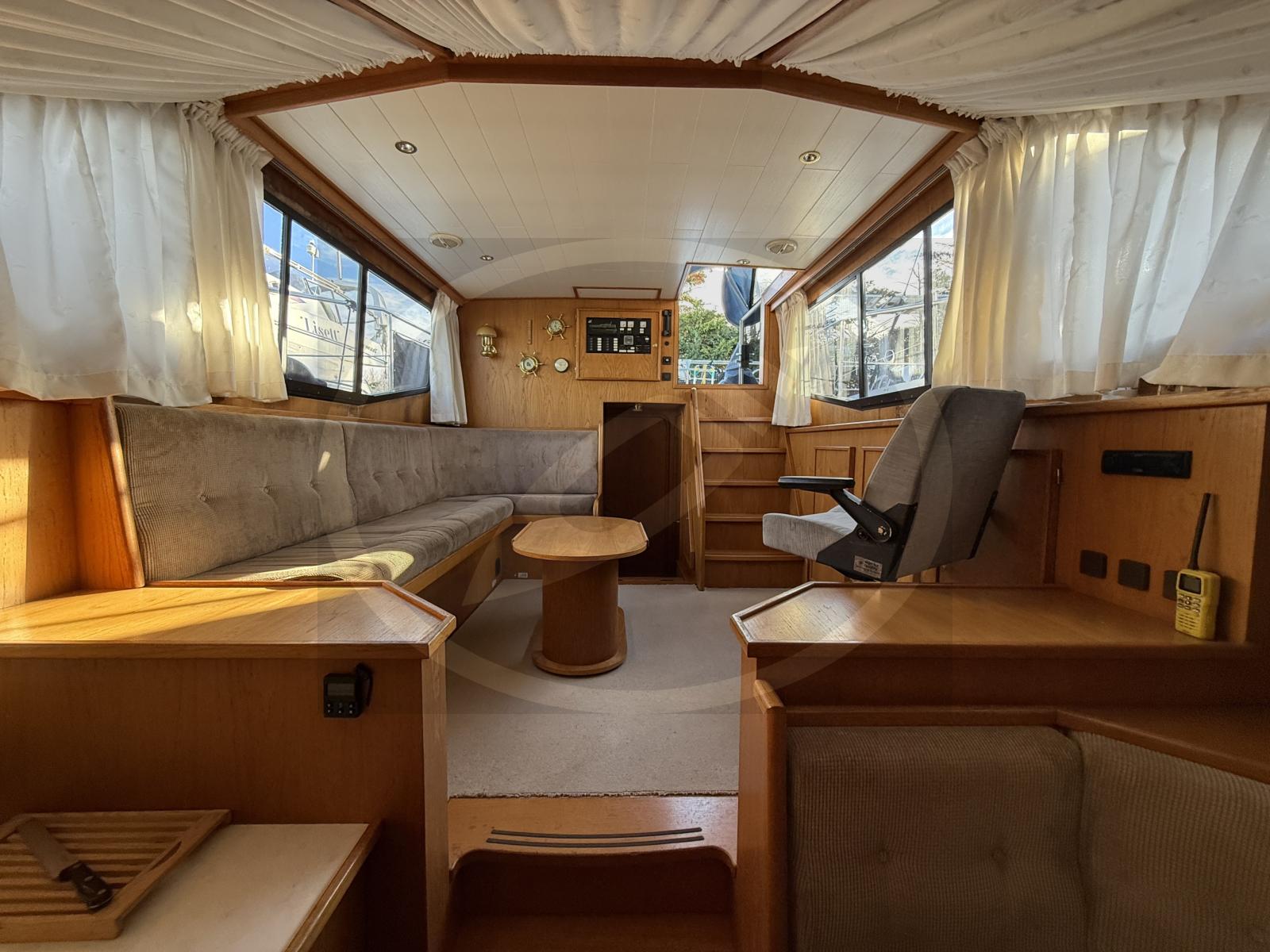 Avec ses 12,10 mètres de longueur, il dévoile une habitabilité exceptionnelle et des volumes généreux, optimisés pour la vie à bord. Sa conception polyvalente permet de passer sereinement des croisières fluviales à la navigation côtière. L'agencement intérieur, lumineux et chaleureux, propose une atmosphère raffinée idéale pour de longs séjours en mer ou sur les canaux.