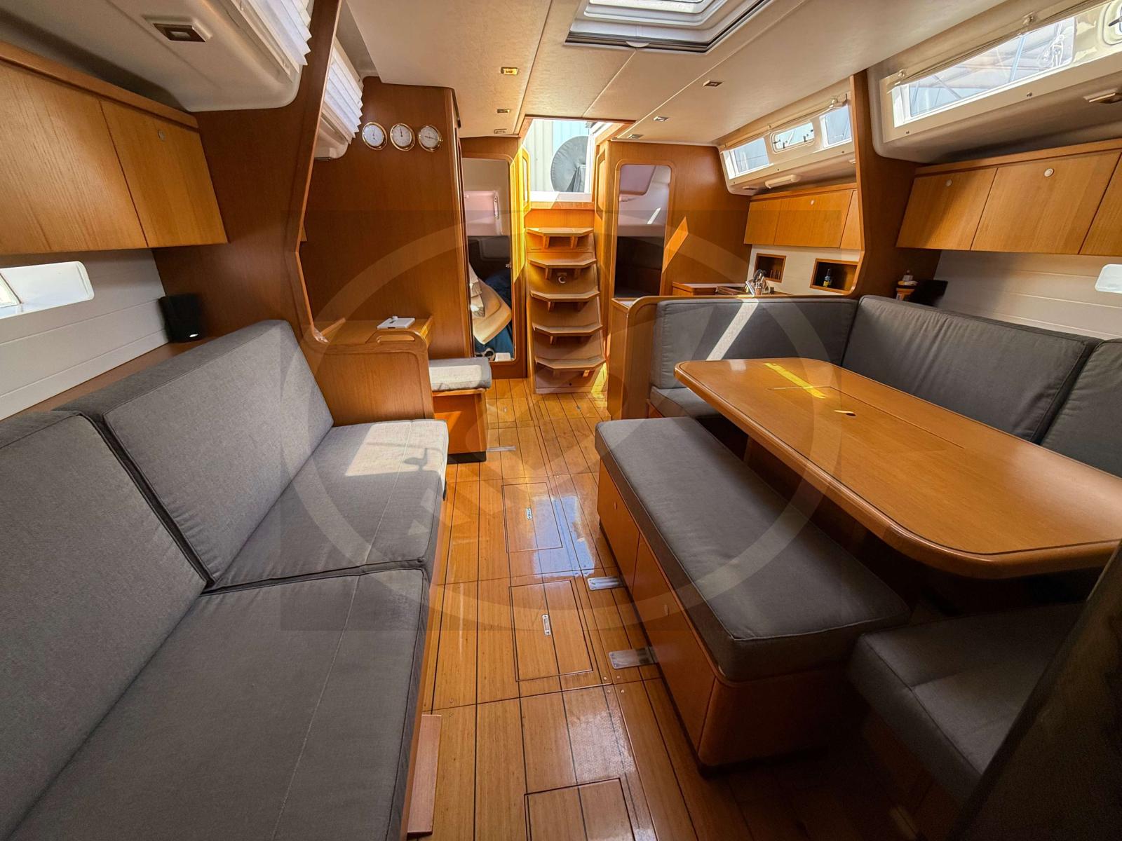 À l’intérieur, les finitions haut de gamme et la luminosité naturelle créent une atmosphère chaleureuse et accueillante. Les aménagements, pensés avec soin, offrent de vastes espaces de vie : une grande cabine propriétaire, une cuisine fonctionnelle, un carré convivial et des rangements généreux pour de longues croisières en toute sérénité.