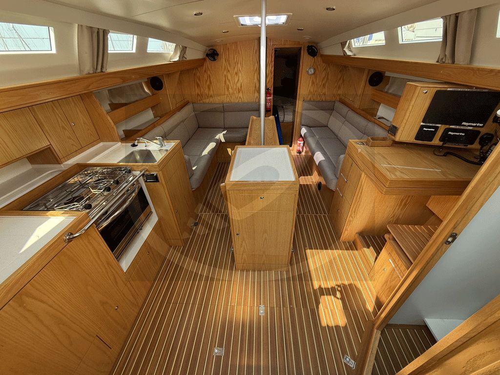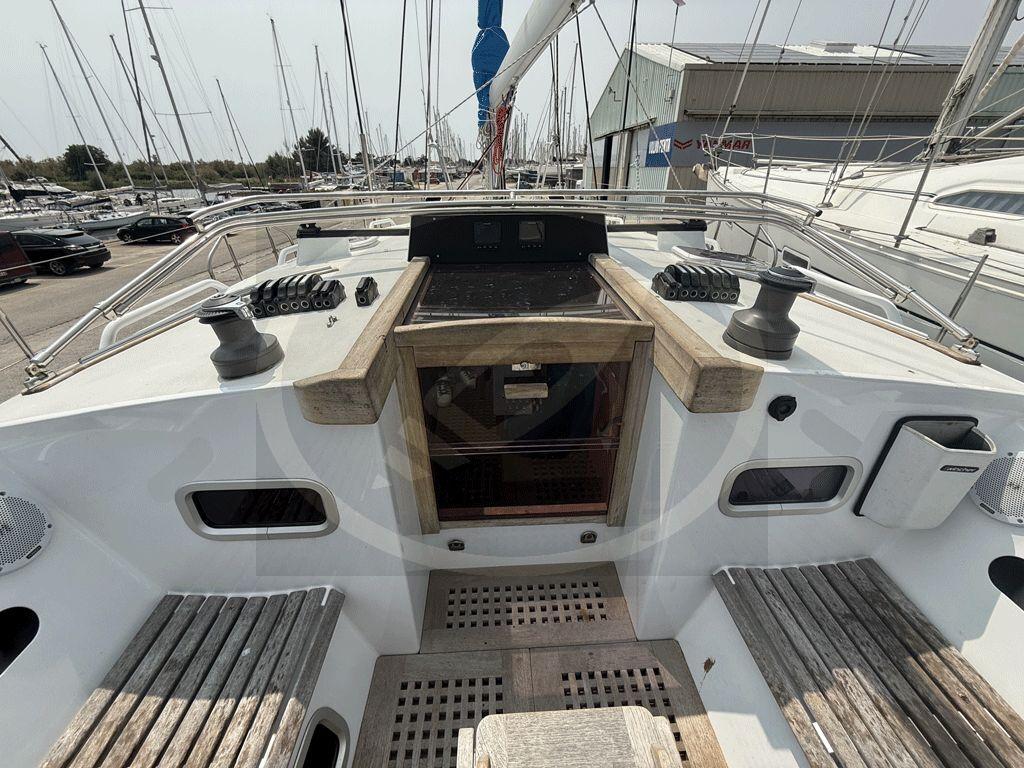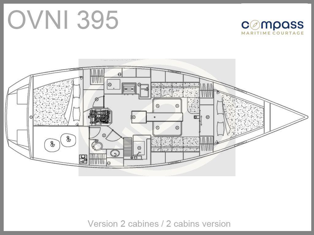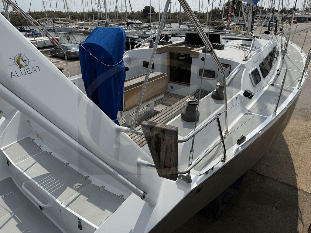 Dessiné par Philippe BRIAND et ayant bénéficié de toute l'expérience du Chantier Vendéen Alubat dans la construction aluminium, l'OVNI 395 est le best-seller dans le segment des 40' aluminium: il dépassera les 100 unités construites à peine 5 ans après son lancement. Ce sloop aluminium de taille raisonnable peut être mené à deux facilement (et même seul) et offre deux belles cabines doubles, trois couchages supplémentaires dans le carré et un espace de vie agréable. Celui-ci, mis à l'eau en 2019, a été équipé afin d'être à la fois sécurisant et autonome. Son propriétaire a porté un soin particulier à l'ergonomie, aux évolutions possibles (pré équipement dessalinisateur...) et à l'ambiance intérieure.