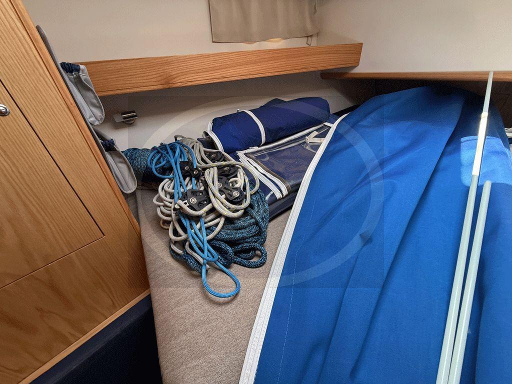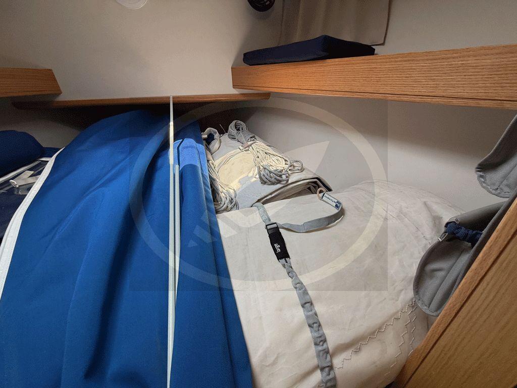 Toiles anti-roulis sur les banquettes du carré utilisables en bannettes de navigation
