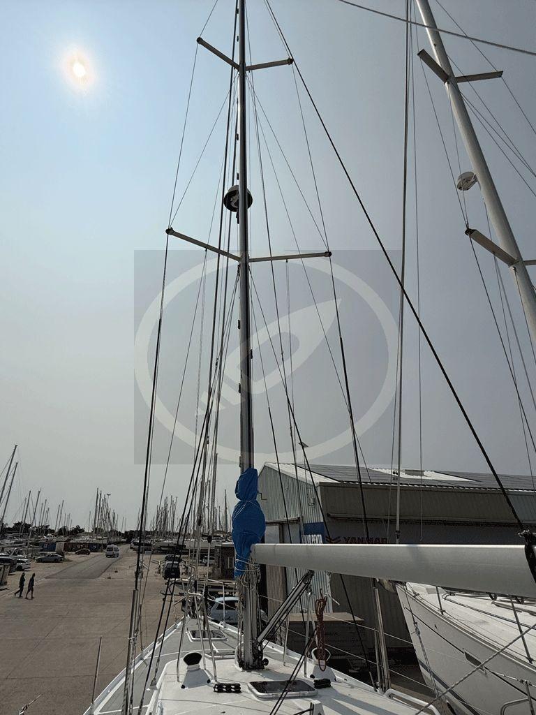 Mât aluminium posé sur le pont, 2 étages de barres de flêche poussantes + échelons de mât jusqu'en tête