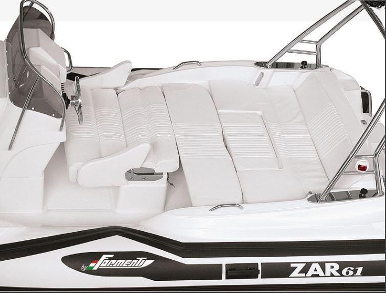 L’équilibre de tous les composants font la valeur essentielle de ce magnifique bateau. Facile à tracter et garer, le ZAR 61, plus de 6m. de longueur, offre à ses hôtes tout l’espace et le confort pour une vie à bord de première qualité. Il y a 10 coffres où ranger l’inimaginable, 8/9 places assises dans le sens de marche, sièges et dossiers anatomiques, 2 énormes bains de soleil plus grands que deux lits doubles, une console de pilotage double pratique et rationnelle comme celle d’une voiture de luxe et un siège pilote particulièrement étudié pour une conduite soit debout soit assise. Son design est ce qu’il y a de plus moderne et de plus fonctionnel à nos jours.