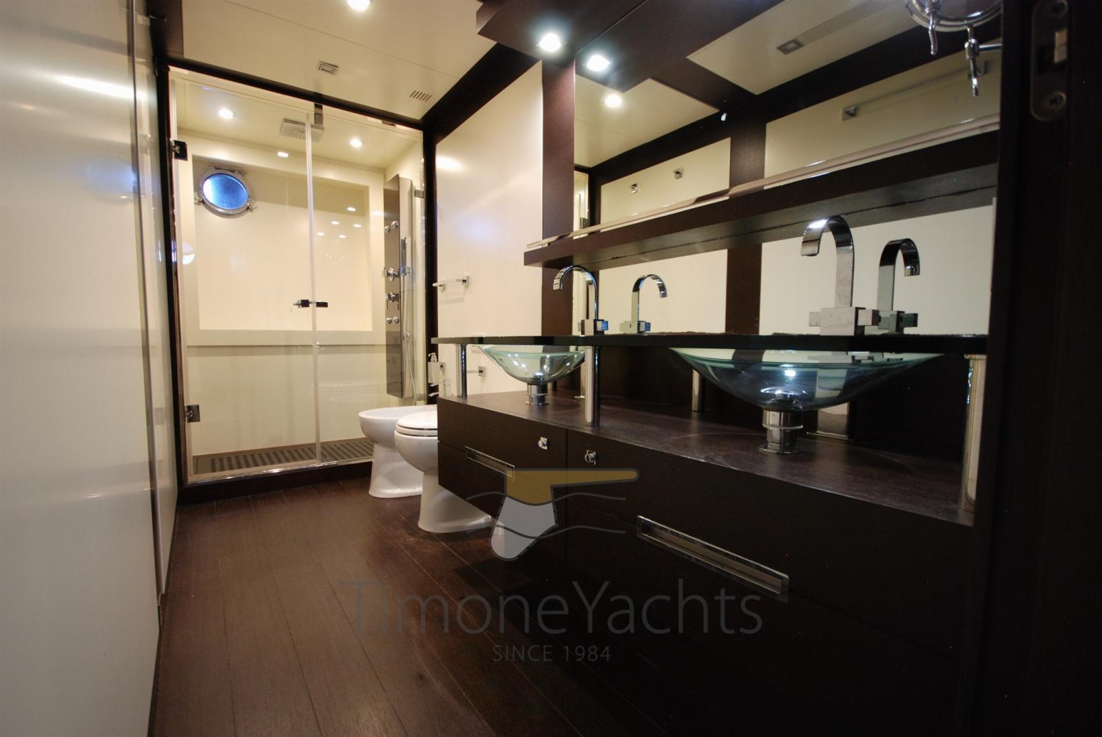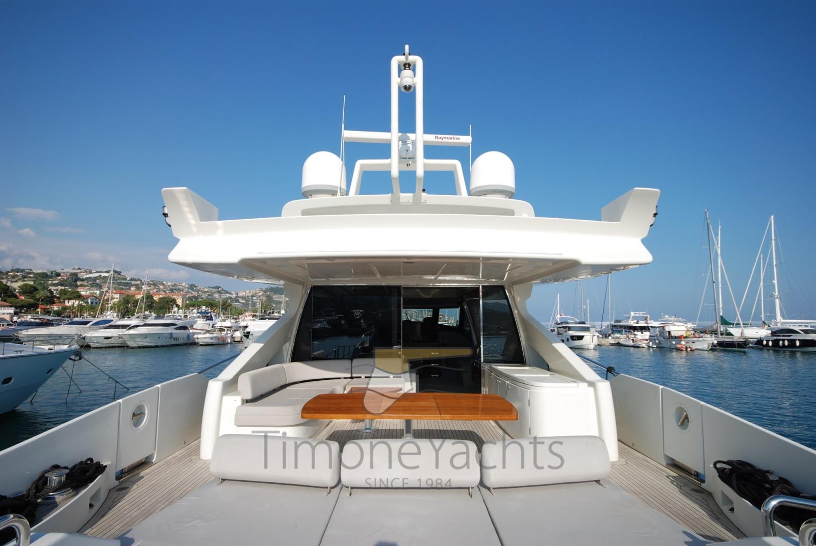 Alarme gaz, Alarme moteur, Eau sous pression, Passavant en teck, Douche de cockpit, Phare de poursuite, Flaps hydrauliques, Garage à annexe, Hard top, Indicateurs de flaps, Lavage de chaine, Passerelle, Porte latérale, Cockpit en teck, Prise de quai, Connexion eau sous pression à quai, Guindeau électrique, table de cockpit, Corne, Winch électrique arrière, Winch électrique avant.
